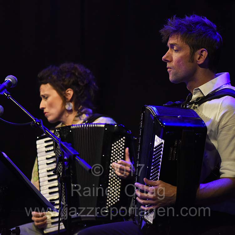 Es war eine Freude die beiden mit ihren verschiedenen Instrumenten, vielfältigen Ideen und Liedern völlig unprätentiös und humorvoll auf der Bühne agieren zu sehen. Ihre Musik, mal traurig schön, mal fröhlich oder zum Tanzen verführend… Grandios!