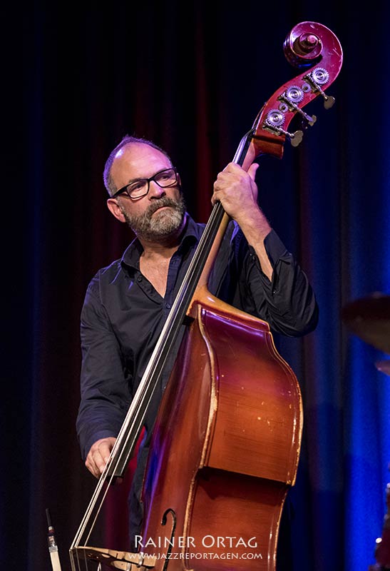 Nach langer Pause ist das Trio nun endlich wieder live zu erleben und beginnt mit „Aspettami„ sofort das Publikum zu verzaubern. Helfrich schafft es sofort auf ihre charmante Weise das Publikum auf eine gemeinsame musikalische Reise mitzunehmen. Geprägt durch ihre Kindheit in Namibias Townships spiegeln sich die Erfahrungen dieser Zeit in den Kompositionen wider. Das Stück „Invictus“ ist Nelson Mandela gewidmet, inspiriert durch sein unermüdliches Engagement im Kampf gegen die Apartheid. „Invictus“, William Ernest Henleys Gedicht, das Mandela während seine langen Gefangenschaft Kraft und Trost spendete, findet in Helfrichs sensibler Komposition ein perfektes lyrisch-melodisches Zusammenspiel. Die zitierten Worte erzeugen Bilder, die musikalische Stimmung und die Temperaturen von Bass und Schlagzeug verwandeln den Saal und wir reisen gemeinsam durch Traumlandschaften, wie hypnotisiert: