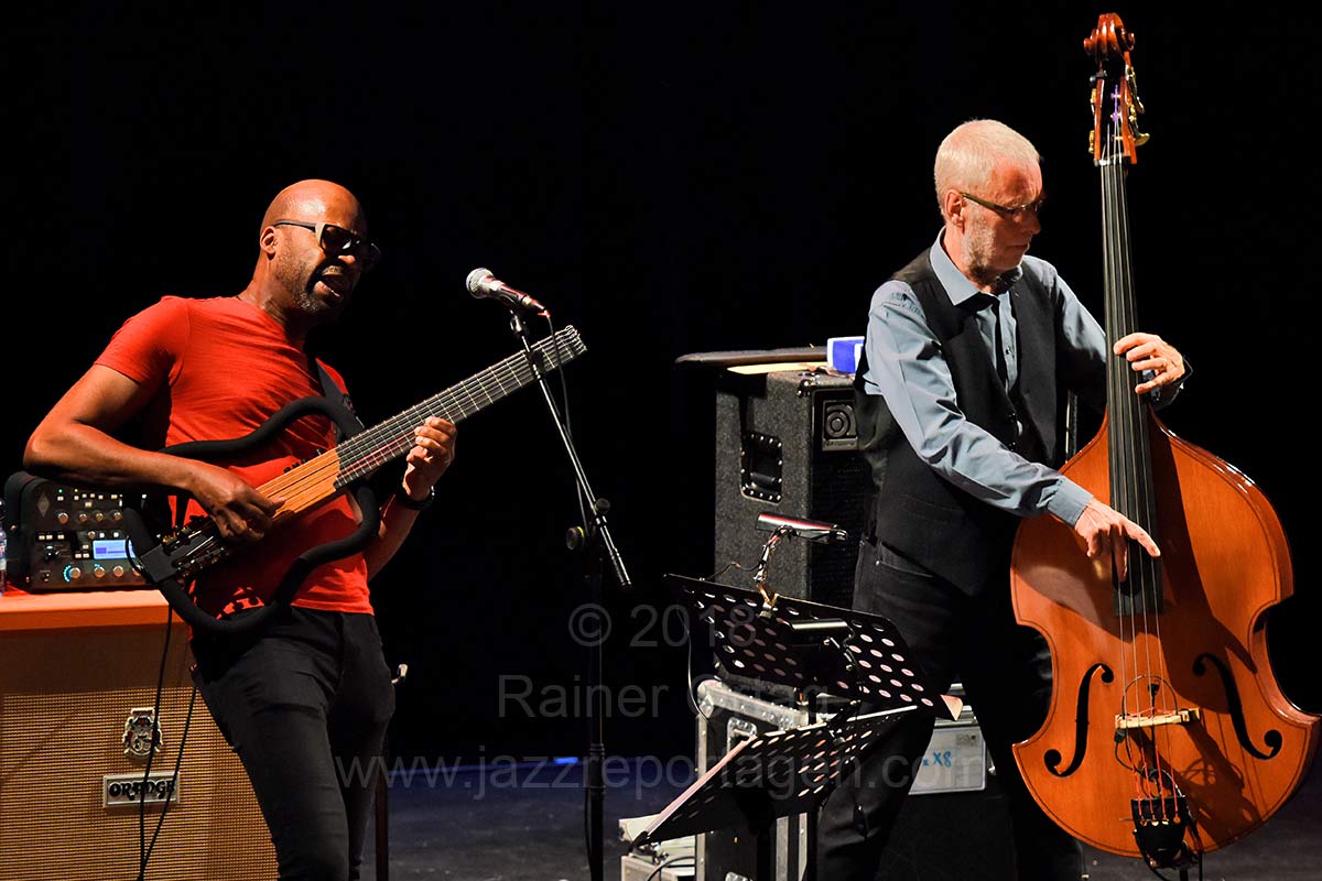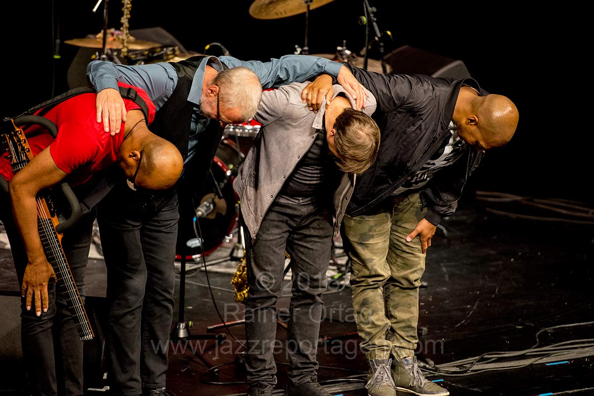 Aziza auf der Württembergischen Landesbühne Esslingen war der Höhepunkt des Jazzfestivals Esslingen 2018. Vier Spitzenmusiker haben sich zu dieser unglaublichen Band zusammengefunden. Der Kontrabassist Dave Holland, der Gitarrist Lionel Loueke, Saxophonist Chris Potter und der Schlagzeuger Eric Harland. Alle vier haben für diesen unglaublichen Konzertabend Kompositionen beigesteuert, die für dieses Quartett maßgeschneidert waren. Während „Aziza Dance“ und „Sleepless Night“ zum Tanzen einladen, wird man mit „Blue Sufi“ hypnotisiert und bei „Aquila“ mit Louekes Gesang in andere, ferne Sphären geholt.