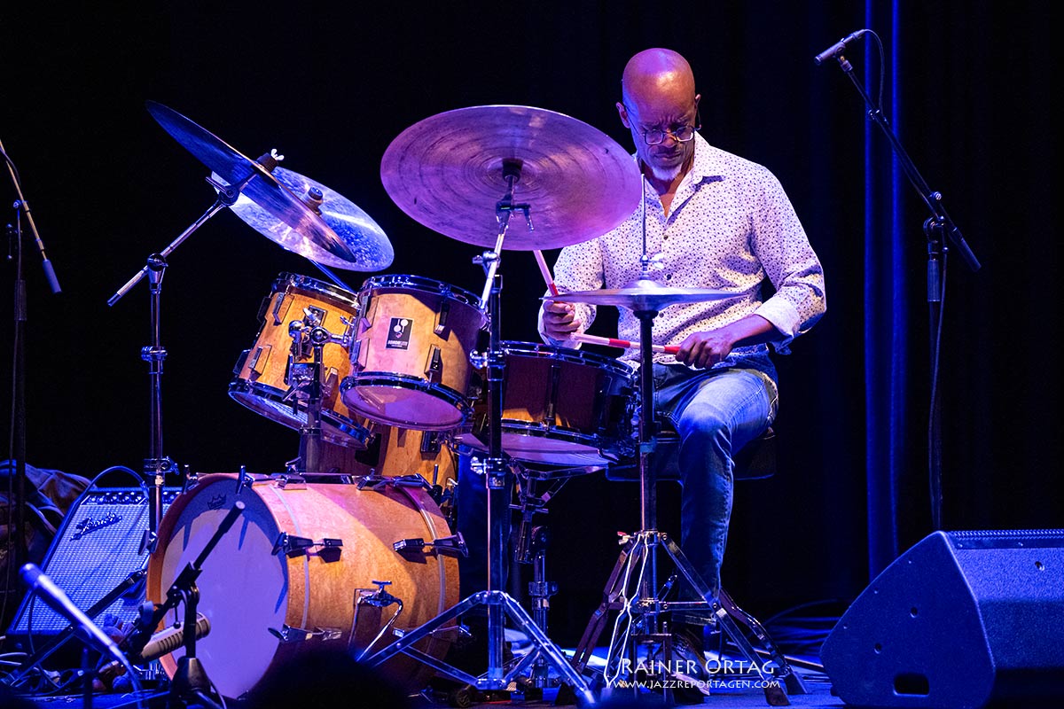 Und so wird das Konzert fast zu einer Suite aus Songs verschiedener Genres, zusammen-gehalten von den tollen Begleitmusikern und natürlich der jazzigen Gitarre Bill Frisells, dem „Powerflüster des Jazz“ (BR). Das Publikum ist begeistert und „überredet“ das Trio zu zwei herrlichen Zugaben. Erst hier kann auch Rudy Royston in einem Drum-Solo seine Extraklasse zeigen. Ein beeindruckendes Konzert von echten Könnern!