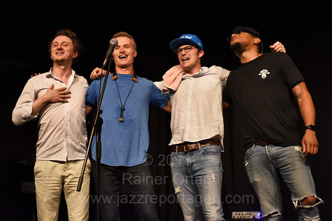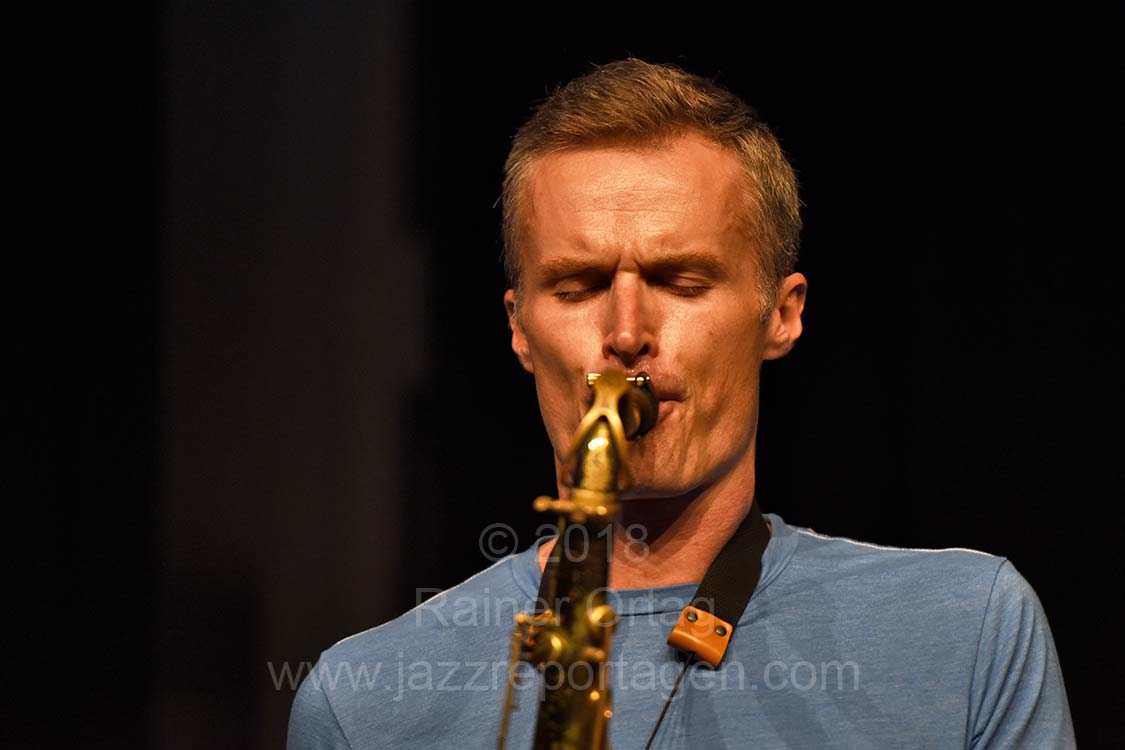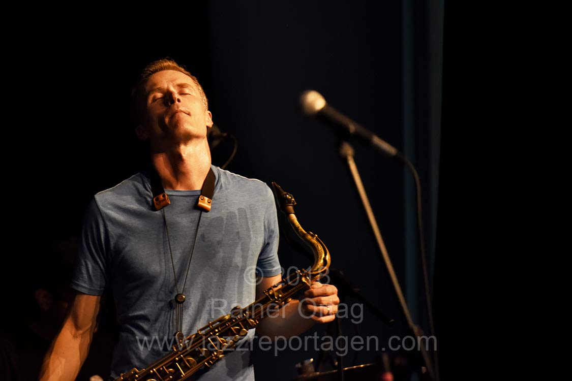 Normalerweise veranstaltet „Jazz im Prinz Karl“ einmal im Monat ein Konzert, aber nachdem Goldings / Bernstein / Stewart am 3. Juni bereits gebucht war hat sich die Gelegenheit ergeben, die Bob Reynolds Group am Ende ihrer Tour durch Europa zu engagieren. Das konnten sie sich nicht entgehen lassen. Zusammen mit dem langjährigen Kooperationspartner „Sudhaus Tübingen“ wurde dieses Konzert im swt-KulturWerk veranstaltet. Dass dabei genau der Nerv vieler Zuhörer getroffen wurde manifestierte sich an der ausverkauften Veranstaltung mit Zuhörern, die teilweise von weither angereist kamen. Sie wurden auch nicht enttäuscht: Der einzigartige Sound von Reynolds Saxophonespiel und die famose Band, die mit viel Vergnügen und Lässigkeit funkige Grooves sowie leise Balladen spielten, begeisterten die Zuhörer. Eine gelungene Premiere für Jazz im neuen Saal für Tübingen.