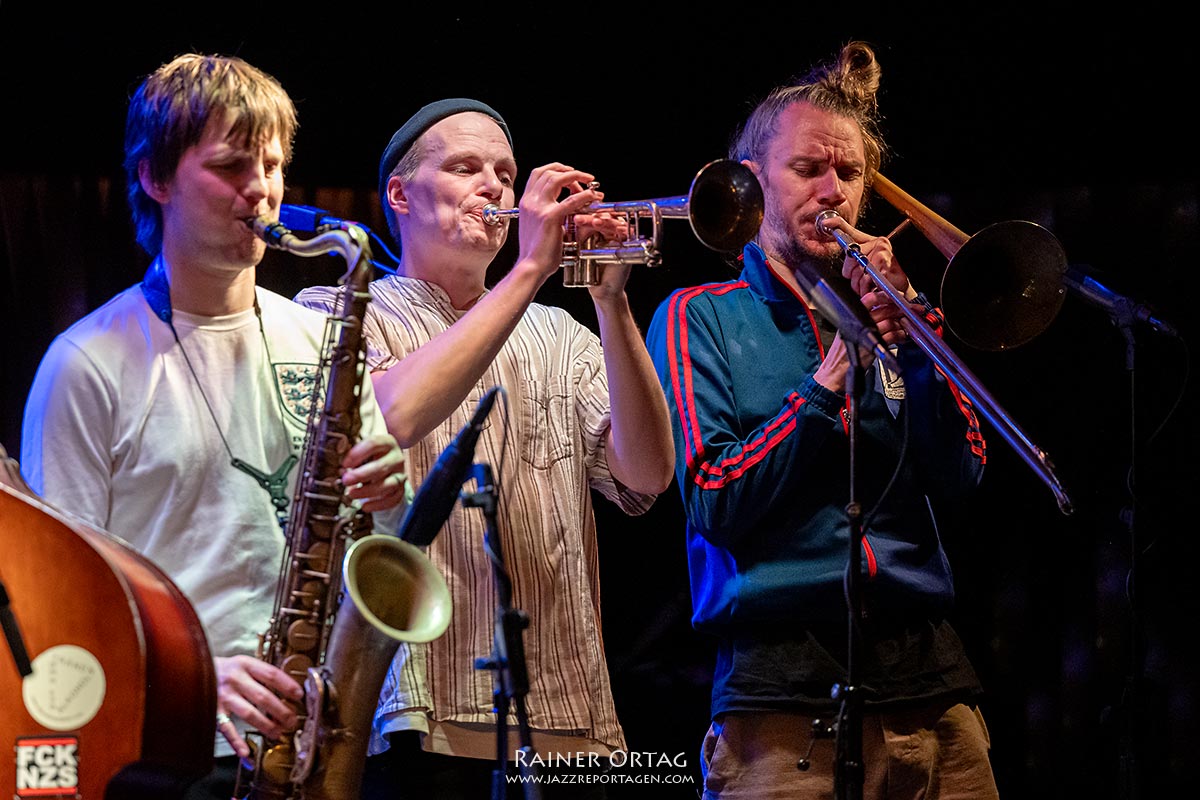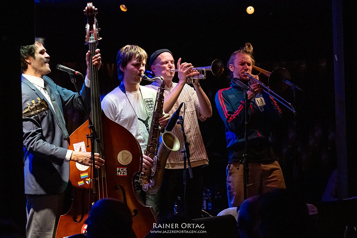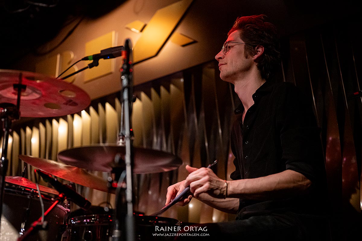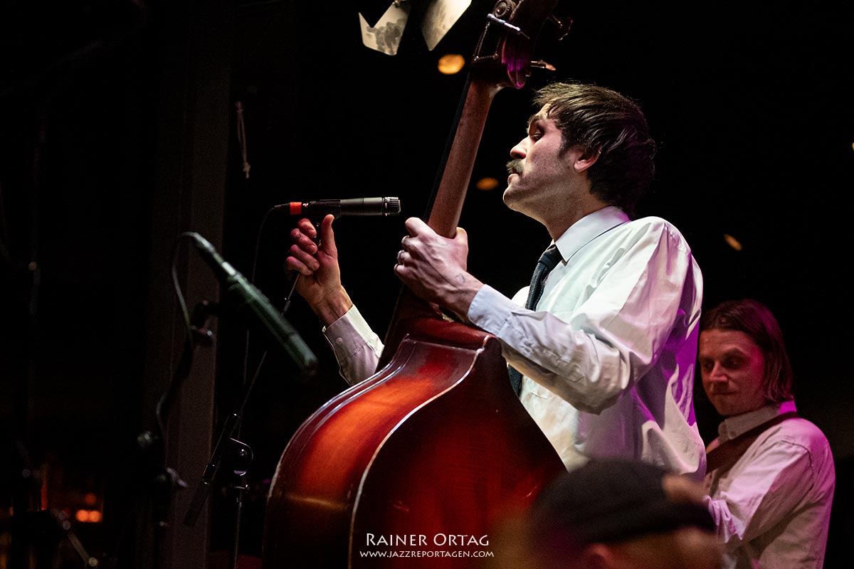 Der Mann am Schlagzeug, Tom Hellenthal, sorgte dafür, dass die Pausen zwischen den Stücken nie zu lang waren – außer bei der humorvollen Moderation des Bassisten und Sängers Marlon Bösherz. Er meinte, wir hätten Glück, da dies der vierte Auftritt der Tour sei: „Wir sind ein bisschen heiser und ein bisschen eingespielt…“. Bei den letzten Songs erinnerte seine Stimme aber dann doch ein wenig an Tom Waits.