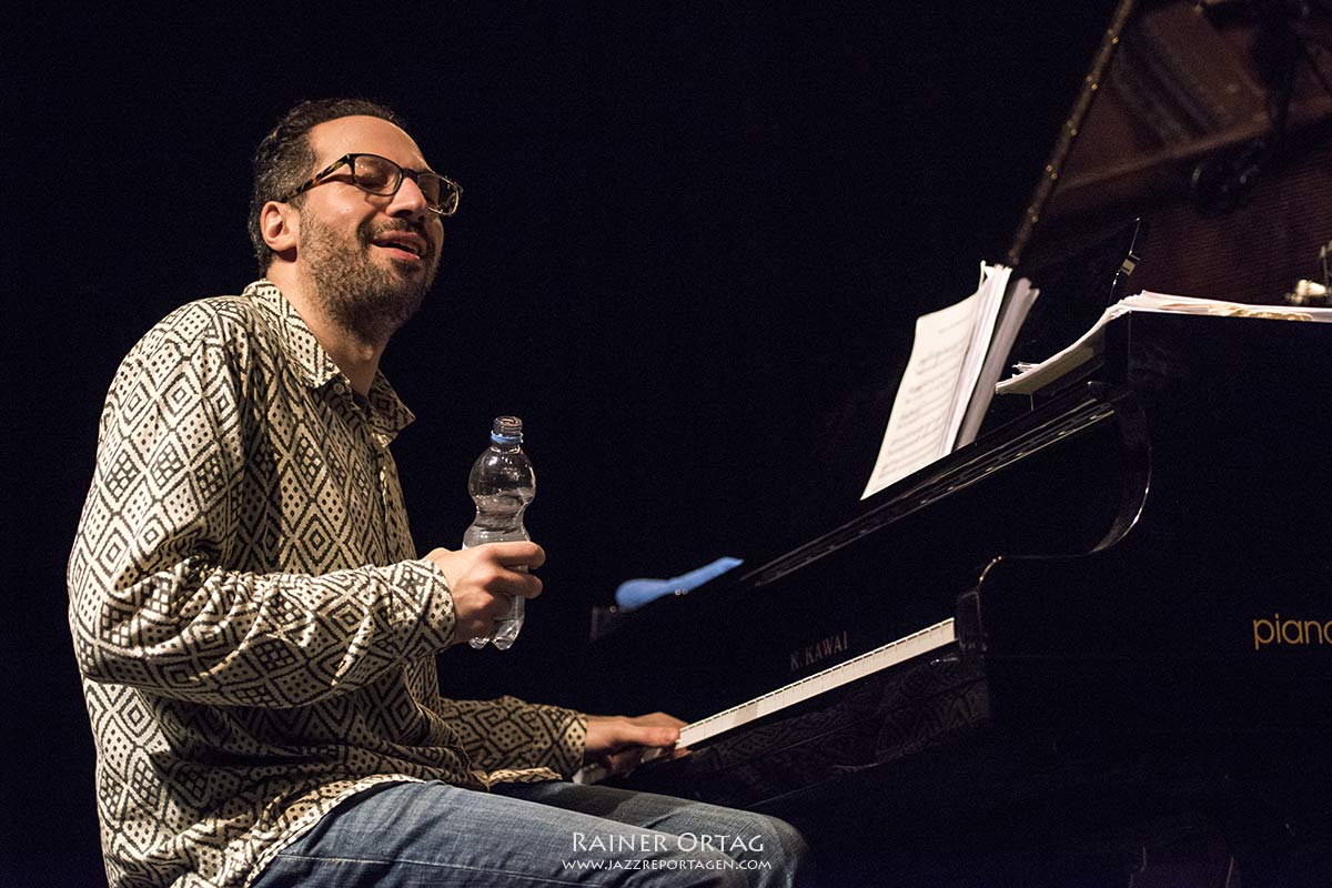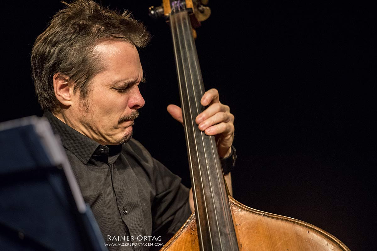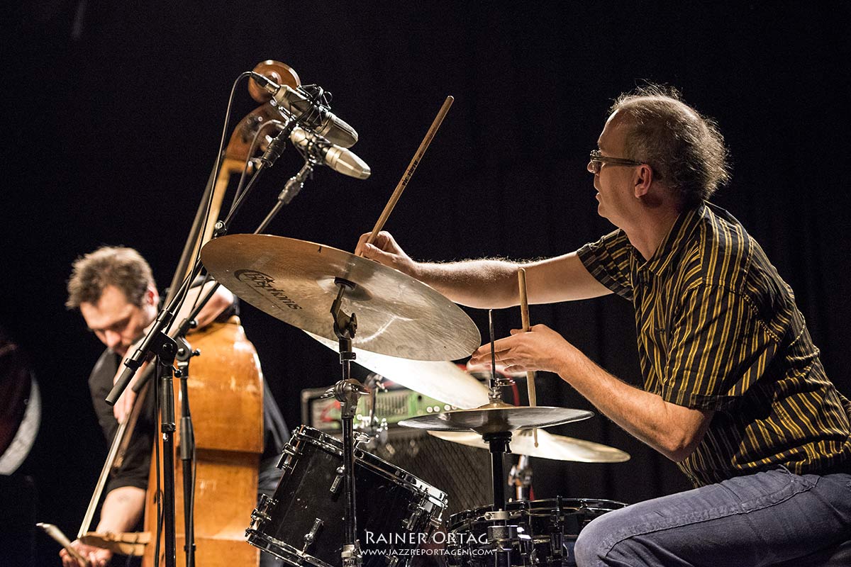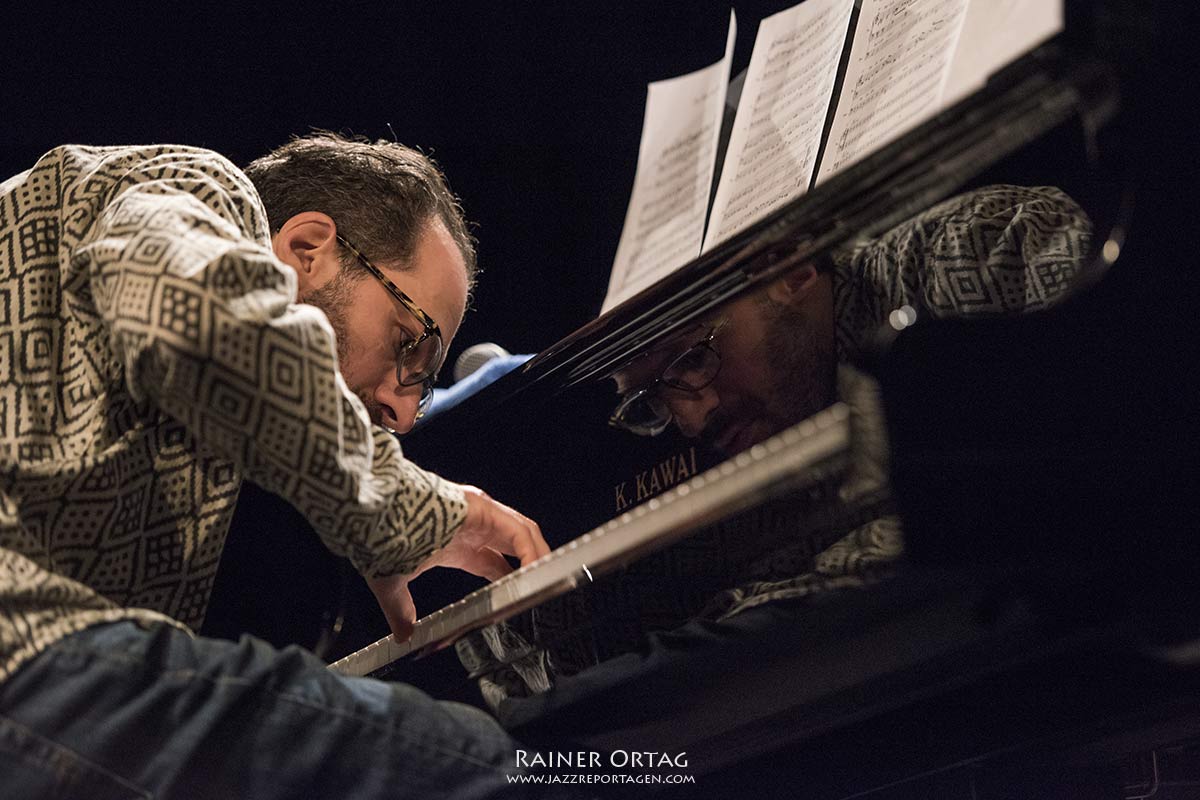 Brian Marsella, der erstaunliche Pianist von John Zorns „Banquet of the Spirits“, „Zion80“ und „The Flail“ war hier mit seinen Eigenkompositionen zu hören. Sein leidenschaftliches und differenziertes Spiel faszinierte das Publikum sofort. Die Notenblätter zu den eigenwilligen Kompositionen waren zwar sichtbar vorhanden, dennoch blieb stets viel Spielraum für Improvisationen. Kaum fühlte man sich in einer Melodie wohl, folgte ein Rhytmuswechsel, ein Bruch, eine andere Tonfolge als erwartet. Keine Musik zum Zurücklehnen und Träumen! Die von vielseitigen Überraschungen geprägten Kompositionen waren ausnahmslos spannend. „Intersection of Dissections“ heißt das Album mit diesen Stücken, das zwar schon aufgenommen, aber bisher noch nicht veröffentlicht war.