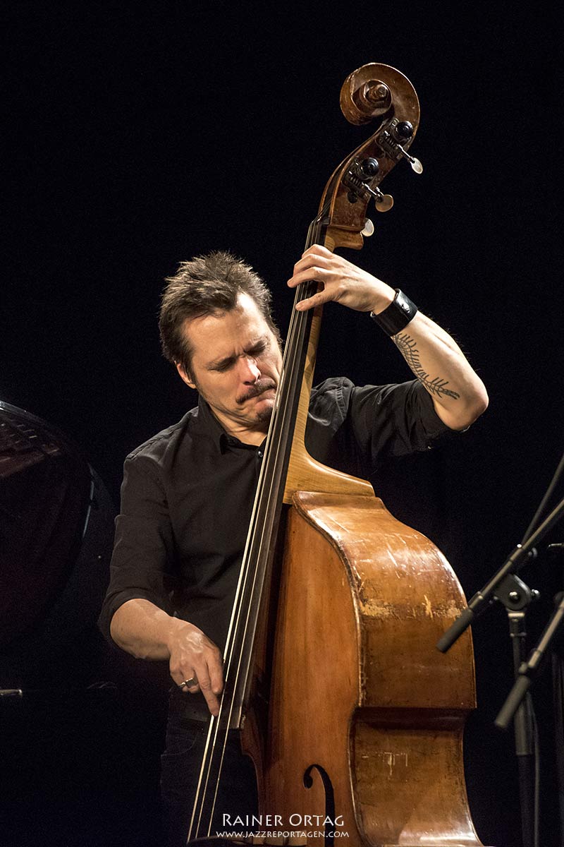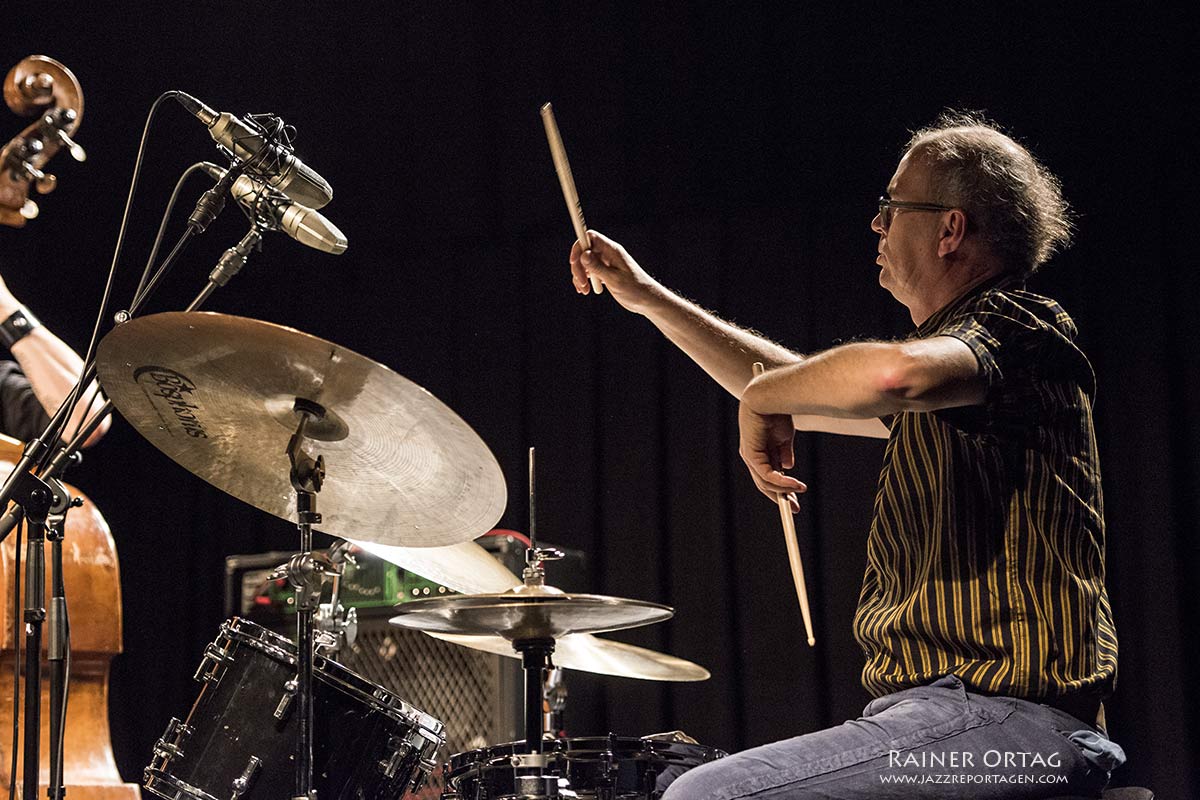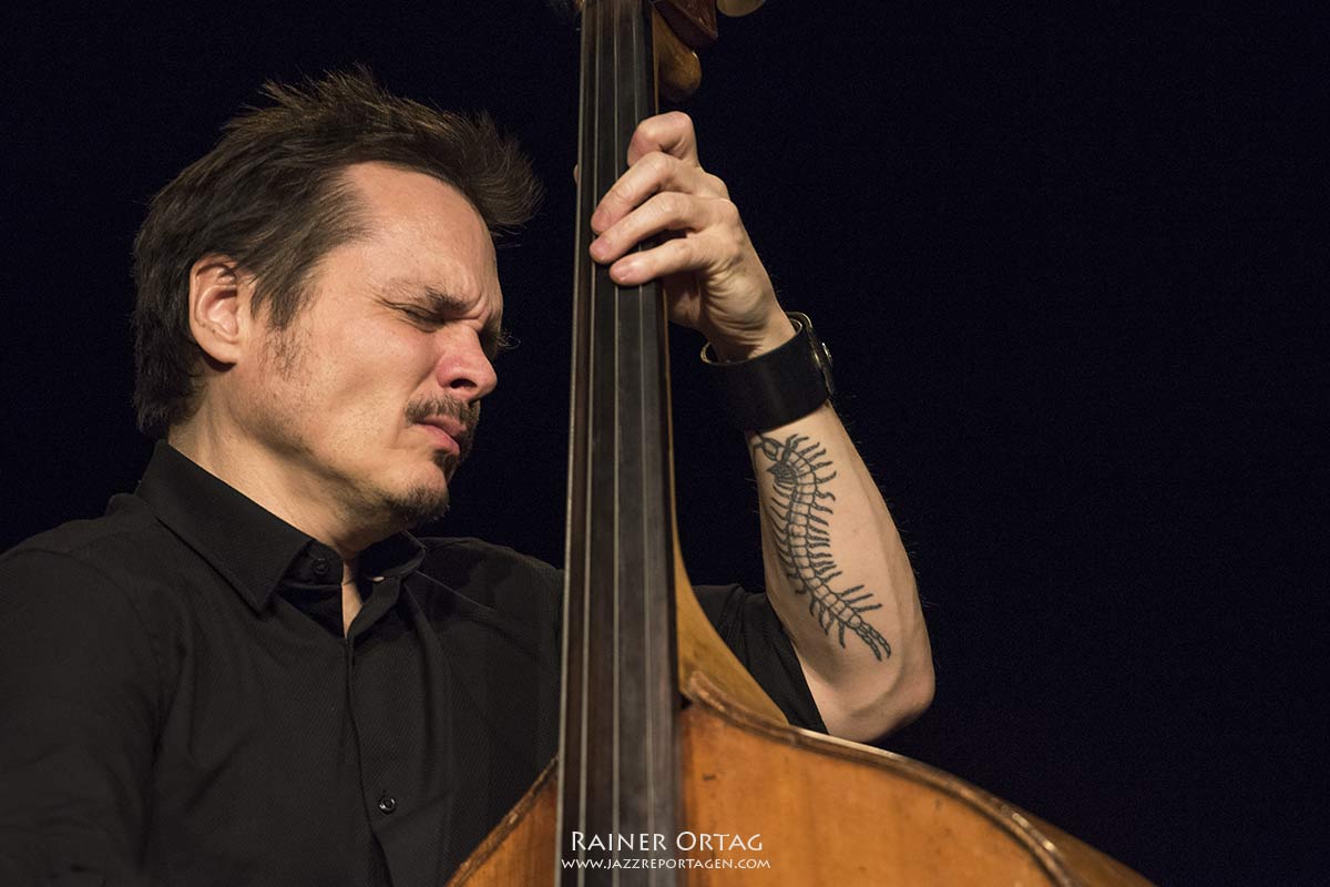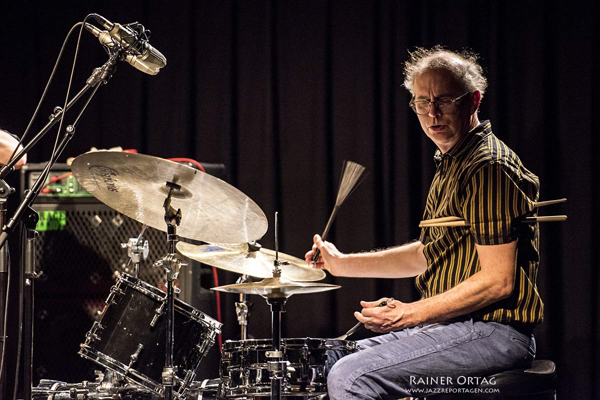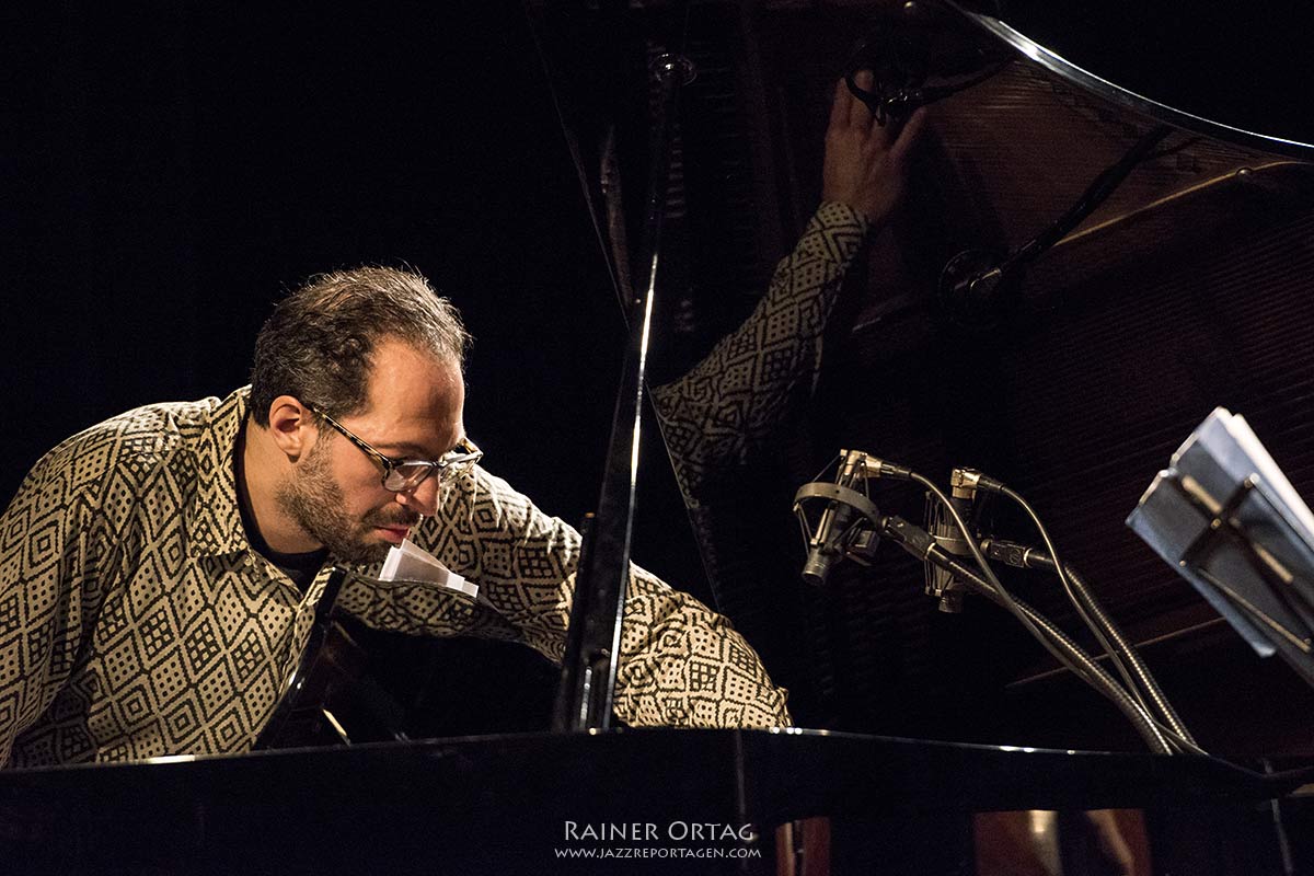 Brian Marsella, der erstaunliche Pianist von John Zorns „Banquet of the Spirits“, „Zion80“ und „The Flail“ war hier mit seinen Eigenkompositionen zu hören. Sein leidenschaftliches und differenziertes Spiel faszinierte das Publikum sofort. Die Notenblätter zu den eigenwilligen Kompositionen waren zwar sichtbar vorhanden, dennoch blieb stets viel Spielraum für Improvisationen. Kaum fühlte man sich in einer Melodie wohl, folgte ein Rhytmuswechsel, ein Bruch, eine andere Tonfolge als erwartet. Keine Musik zum Zurücklehnen und Träumen! Die von vielseitigen Überraschungen geprägten Kompositionen waren ausnahmslos spannend. „Intersection of Dissections“ heißt das Album mit diesen Stücken, das zwar schon aufgenommen, aber bisher noch nicht veröffentlicht war.