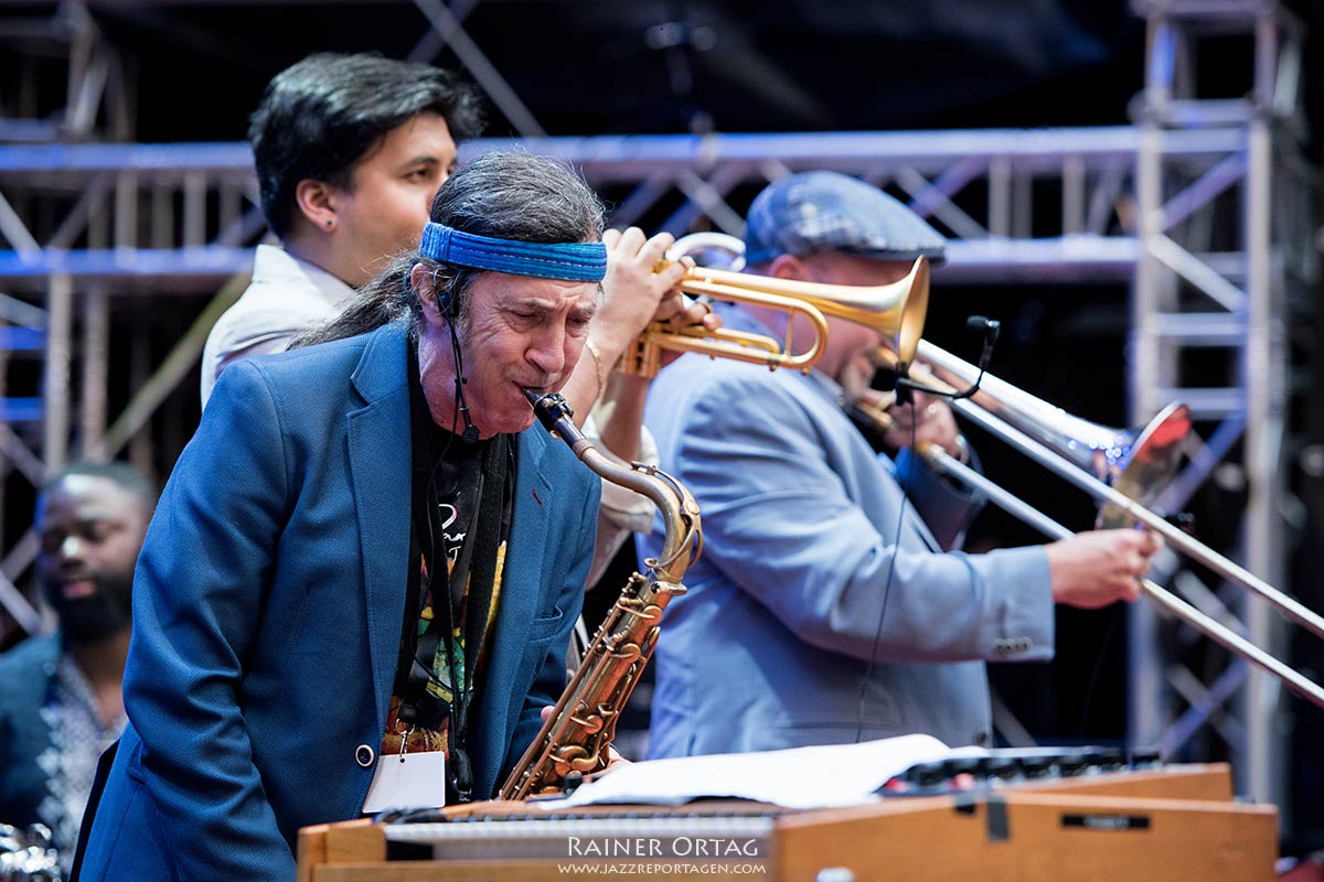 Die neunköpfige Besetzung des Abends war von erlesener Qualität. Wie gut tat es, endlich in Deutschland wieder einmal Jorge Pardo am Tenor und mit seinem unverwechselbaren Querflötensound zu hören, den Musiker, der lange mit Paco de Lucia unterwegs war und den man bei uns selten zu Gesicht bekommt. Der Trompeter Michael Rodriguez und Steve Davis, der mit Art Blakey und Jackie McLean gespielt hat, vervollständigten das Bläsertrio.