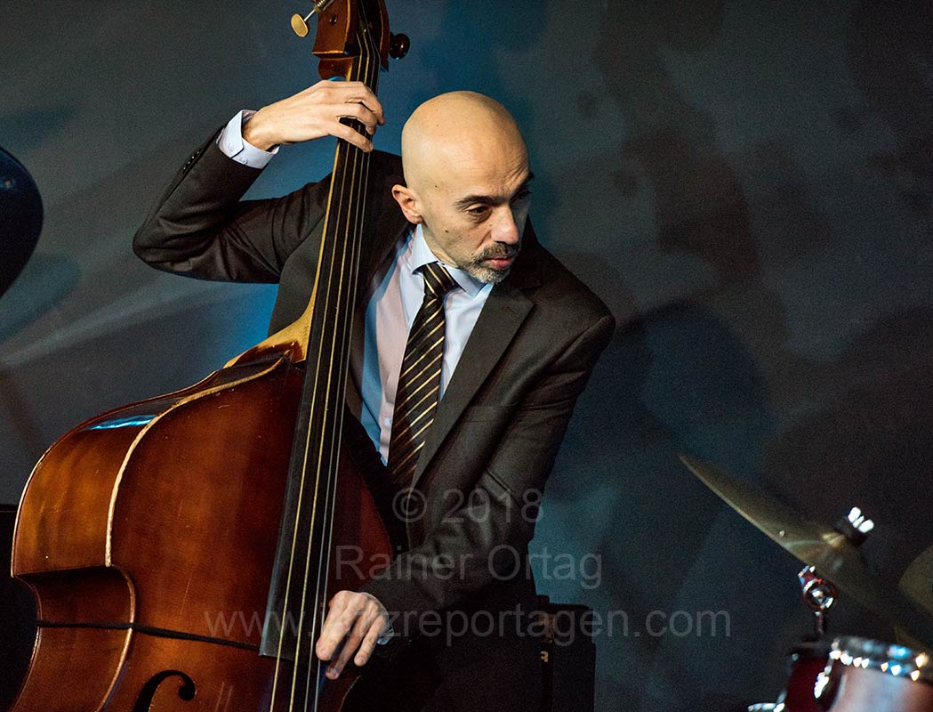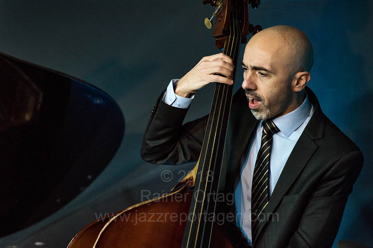 Am Bass hörten wir den griechischen Musiker Giorgos Antoniou, der seit Jahrzehnten in der Schweiz lebt und auch hier die Swiss Jazz School absolviert hat. Er begleitete bereits viele bekannte Kollegen wie Cedar Walton, Benny Golson, Billy Hart, Dado Moroni, Roy Hargrove, Kirk Lightsey und Roberta Gambarini und seit vielen Jahren Claus Raible.