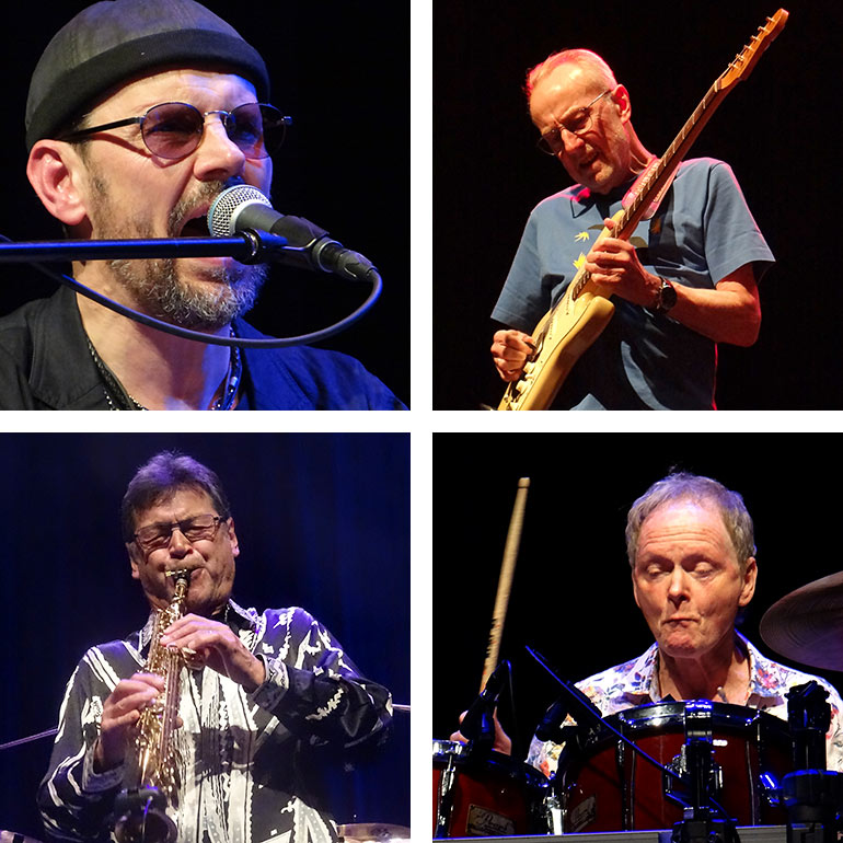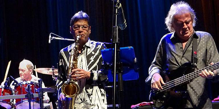 Vor knapp zehn Jahren hat sich die Formation einer „Frischzellenkur“ unterworfen und erheblich jüngere Musiker integriert, die inzwischen fester Bestandteil sind und 2025 mit, auf der hoffentlich nicht letzten Tournee sind. Kim Nishikawara am Saxophon, Nick Steed an den Keyboards und Malcolm Mortimore ziehen den Altersdurchschnitt der Veteranen erheblich nach unten. Naja, Drummer Mortimore spielte 1971 schon bei der Prog-Rock-Gruppe Gentle Giant und ist auch schon gut siebzig Jahre alt. Doch Alter ist nur eine Zahl und Verfallserscheinungen sind an diesem Abend musiktechnisch in keiner Weise festzustellen. Das Gegenteil ist eher der Fall, die Stücke aus dem aktuellen Album „XI“ wirken frisch und unverbraucht, sind mehr dem Rock als dem Jazz zugetan, nicht mehr episch lang, sondern eher kurz und kraftvoll, dem musikalisch aktuellen Zeitgeist entsprechend.