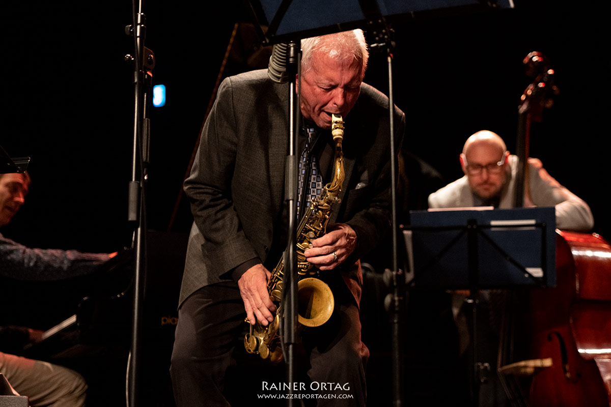 Mit Tadd Damerons „Choose now“ begann ein sicher unvergesslich bleibender Jazzabend. Das Stück „Philly J.J.“ schrieb Dameron für seinen Freund und Schlagzeuger „Philly“ Joe Jones. „On A Misty Night“ hat Dameron mit John Coltrane aufgenommen und wurde hinreissend interpretiert. Bei „Memories of you“ von Eubie Blake und „Flossie Lou“ von Dameron bekamen wir intensive Soli von Dick Oatts und Jim Rotondi zu hören.