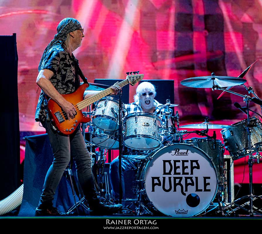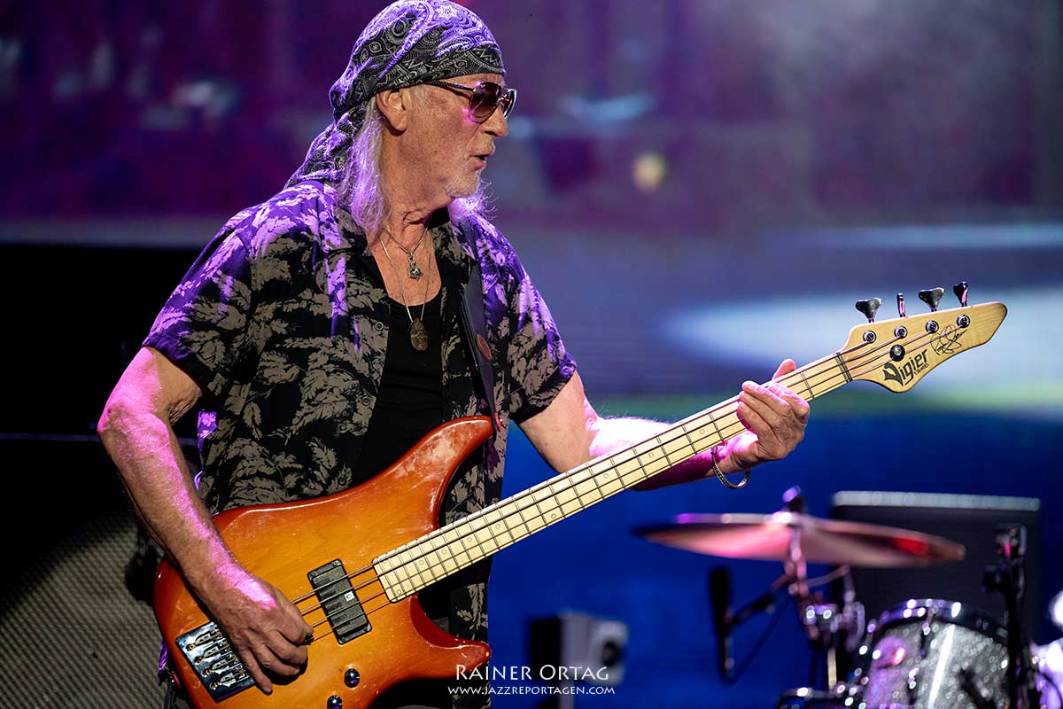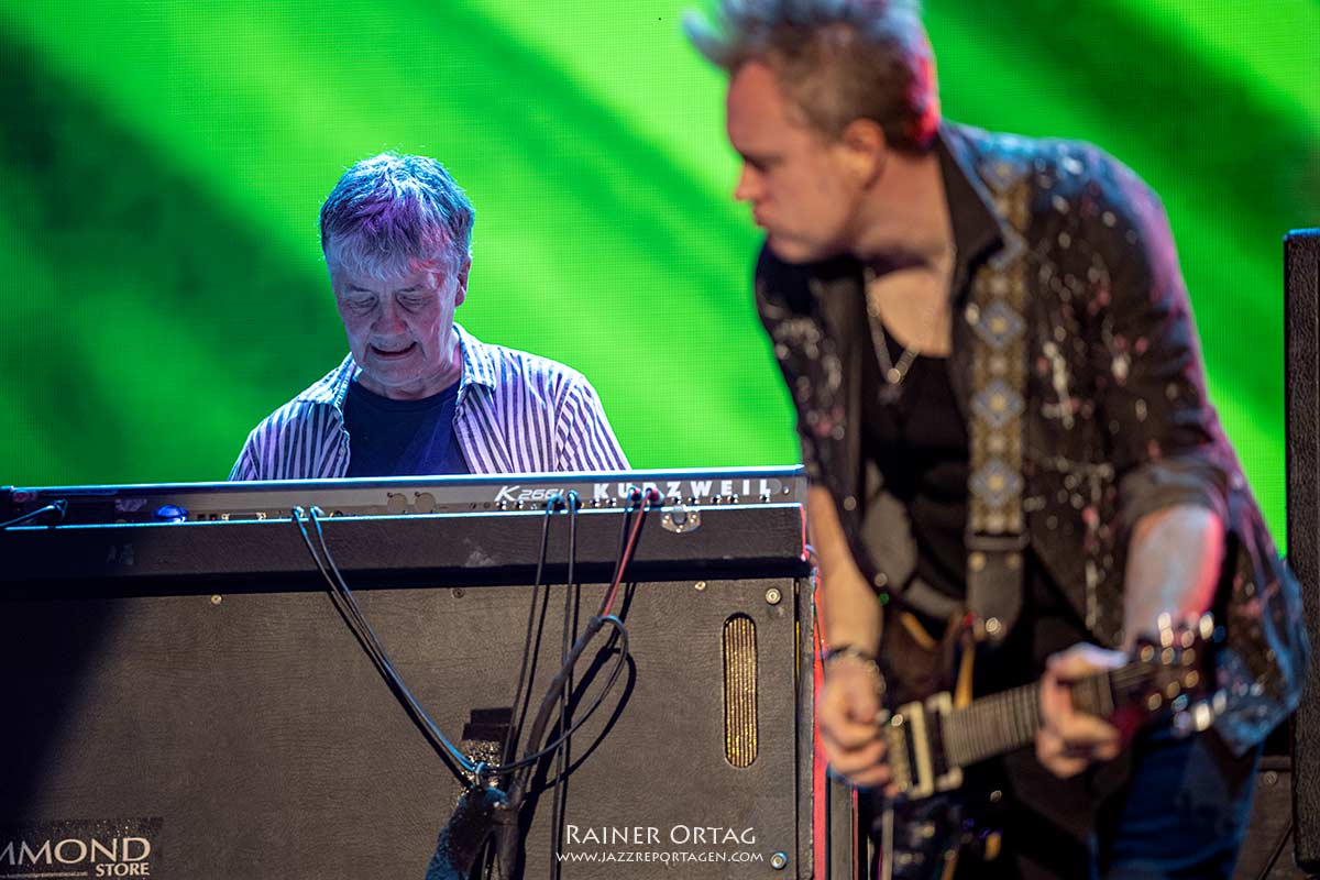 Dieser Abend war auch eine geschichtsträchtige Reise durch die musikalische Welt von Deep Purple. Noch immer sind drei Gründungsmitglieder dabei, Sänger Ian Gillan, Bassist Roger Glover, beide zählen bereits 77 Jahre, sowie Schlagzeuger Ian Paice der 2 Jahre jünger ist. Don Airey an den Keyboards ersetzte 2012 den verstorbenen Jon Lord und macht dies nun seit über einem Jahrzehnt mit Bravour. Auch an diesem Abend ließ der scheinbar immer gut gelaunte Keyboarder sich etwas besonderes einfallen. In seinem Solo baute er geschickt den schwäbischen Klassiker „Auf der schwäbsche Eisenbahn“ mit ein, was bei den johlenden Fans gut ankam.