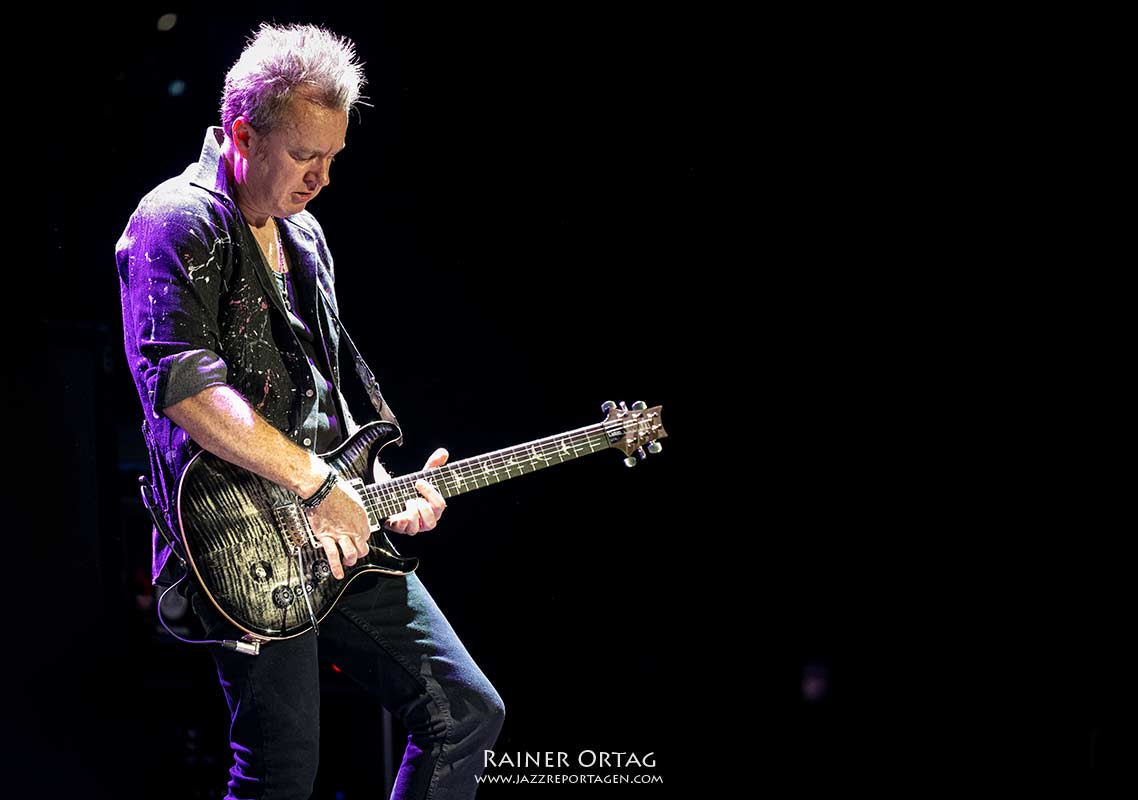 Der jüngste im Bunde ist der irische Gitarrist Simon McBride, der gerade mal 45 Lenze zählt. Er folgte im letzten Jahr Steve Morse, der nach 12 Jahren in der Band, sich nun wieder mehr seinen Soloprojekten widmet. McBride bringt mit seinem Gitarrenspiel eine gewisse Frische in das Geschehen und lässt die Solos die einst von Gründungsmitglied Ritchie Blackmore und Steve Morse gespielt wurden in einem neuen Licht erstrahlen. Das Alter nur eine Zahl ist und nicht eine Ausrede etwas nicht mehr zu tun, wurde an diesem Abend eindrucksvoll bewiesen. Die Rhythmusmaschine Paice/Glover funktioniert nach wie vor hervorragend und die Stimme von Ian Gillan scheint trotz des hohen Alters in immer noch immense Höhen aufsteigen zu können. Wobei das Sangesglanzstück „Child in Time“ seit mindestens 10 Jahren nicht mehr im Programm ist.