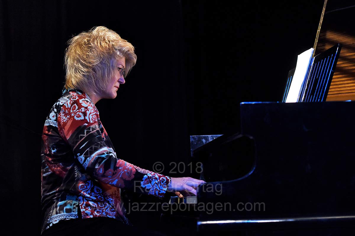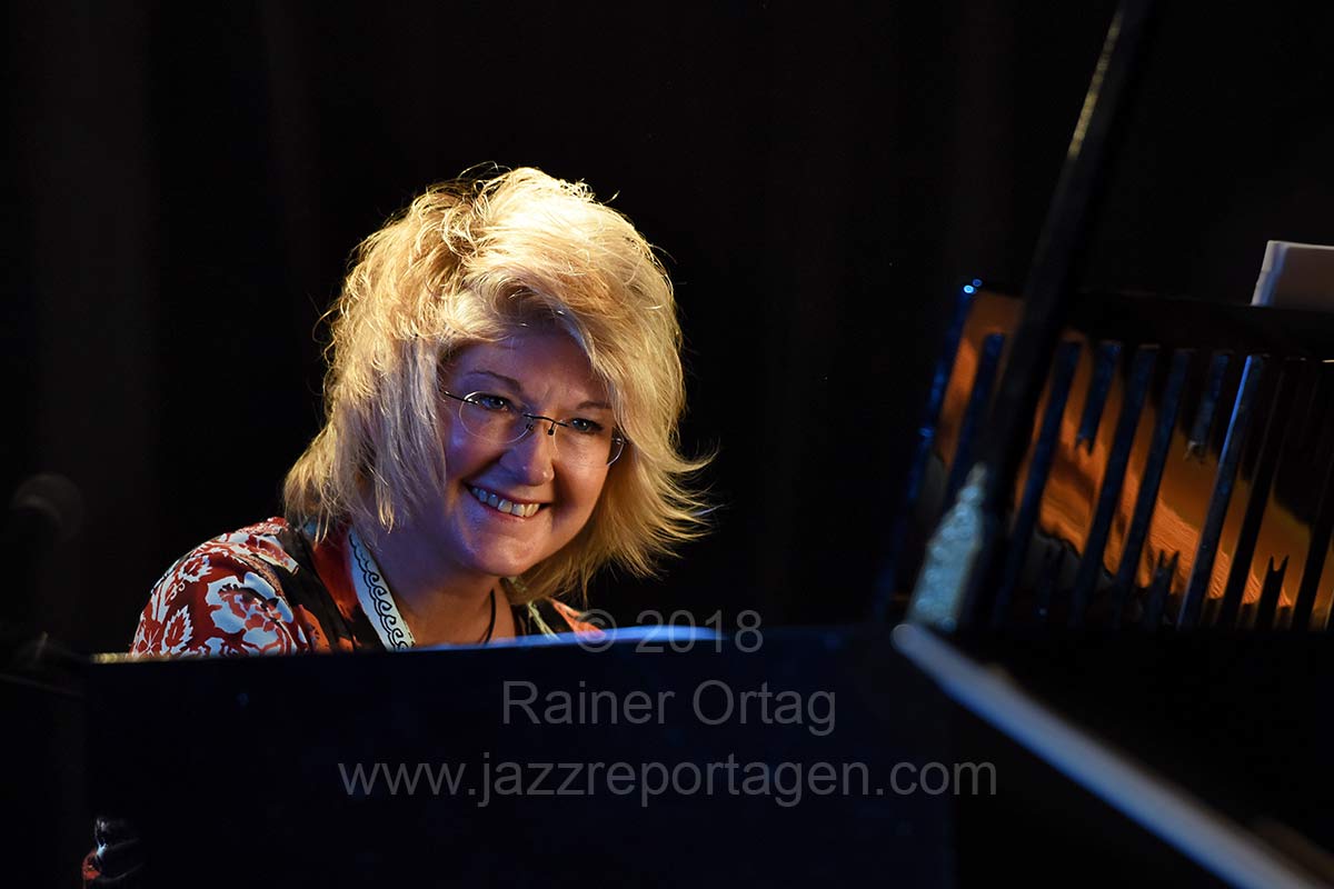 Mit ihrem ausdrucksvollem Gesang, ihrem ausgezeichneten Klavierspiel und ihren unterhaltsamen Art all dies zu präsentieren begeisterte sie das Reutlinger Publikum. Von Lee Shaw spielte sie unter anderem „Schnürl Regen“ und Standards wie „How Deep Is The Ocean“ und als Zugabe noch „On Green Dolphin Street“.