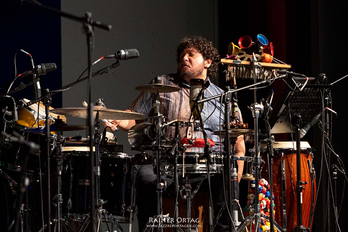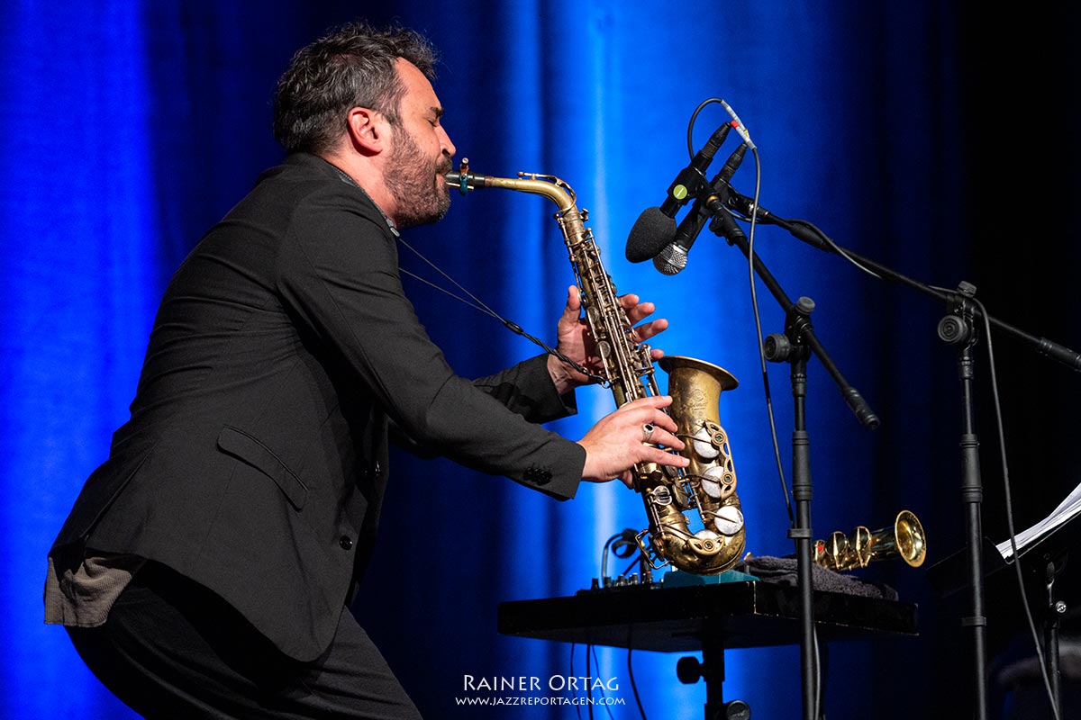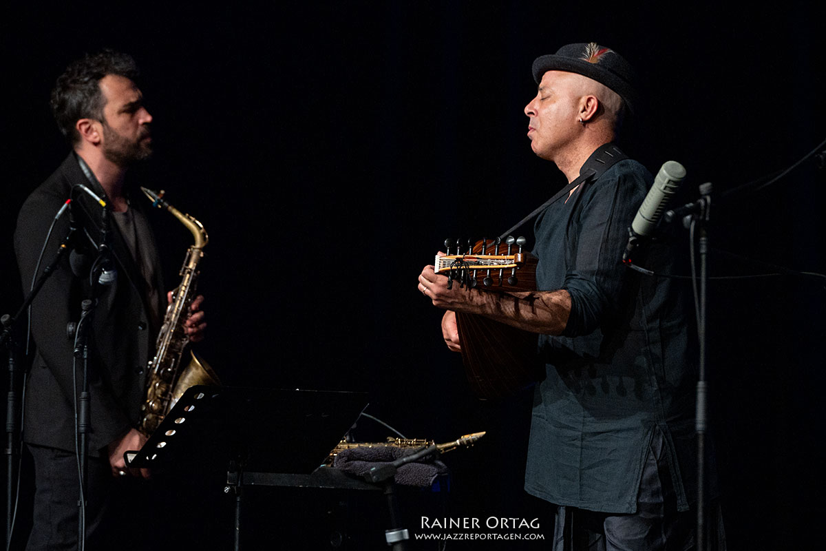 Gerade diese ruhigen Momente, wo sich das Saxophon und E-Gitarre mit Hall durchsetzt, schwebend in das Gefüge eingliedern, entsteht die Magie dieser einzigartigen „verjazzten Weltmusik.“ Dieser Abend ist ein regelrechtes Intervalltraining für die Gehörgänge. Man wird aus diesen schwebenden Soundsequenzen immer wieder, im positiven Sinne heraus gerissen, sei es durch krachende Gitarrenriffs von Aarset, oder dem Jan Gabarek nicht unähnlichen Saxophonspiel von Casarano. Oft duellieren sich Saxophon und Oud untermalt vom treibenden Rhythmus von dos Santos und dem hypnotischen Gitarrenspiel des Norwegers.