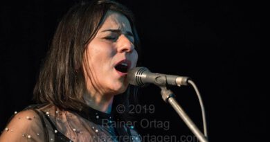 In der Pause strahlte Judith Goldbach: „Ich bin total glücklich. und freue mich, dass die Schönaicher so gut drauf sind und diese Reihe so gut angenommen wird. Wir waren bereits vor zwei Wochen total ausverkauft!“. In der zweiten Halbzeit offenbarte „Centerpiece“ was es heißt dynamisch zu musizieren und auch leisesten Passagen Würze zu verleihen, während „Backlash Blues“ zu einer gitarristischen Spielwiese ersten Ranges wurde. „Is You Is Or Is You Ain’t (My Babe)”, ein Stück das Dada ursprünglich gar nicht so sehr mochte, hätte nicht besser intoniert werden können. Mit „Everyday I Have The Blues“ endete das Konzert – vorerst. Doch unter zwei Zugaben ließ man die Combo nicht von der Bühne. Standing Ovations! Unter den Besuchern auch Ex- „Dicke Fische“- Mitglied Jürgen Ammann. Er resümierte: „Spielfreude, Lebendigkeit und Spontanität! Die großartige Fola benötigte keinen Hall auf dem Mikro. Alles war harmonisch abgemischt und man fühlte sich förmlich in die Musik hineingezogen“.