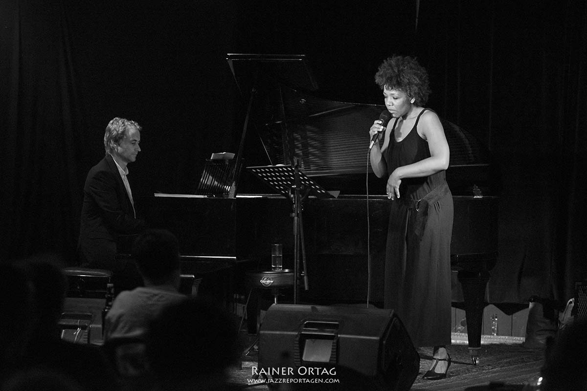 Begleitet wird Rainer Tempel an diesem Abend von der Stuttgarter Sängerin Fola Dada, die die über drei Jahre entstandenen Poe- und Dickinson-Zyklen ihres Duopartners mit klarer und gleichzeitig sanfter Stimme untermalt. Vor allem im zweiten Teil wird Fola Dada mehr und mehr zum Medium für Tempels Tondichtungen und für die Geister von Dickinson und Poe. Ihr Zugang zur Welt des romantischen Kunstliedes gefährdet nie die Substanz der Stücke. Im Gegenteil, der Respekt, den die Jazzsängerin ihnen gegenüber empfindet, ist jederzeit spürbar. Interpretationen wie „I felt a funeral, in my brain“ oder auch das düstere „If I should die“ laufen wie in Zeitlupe ab und entwickeln sich mit der Langsamkeit und der Logik eines Alptraums.