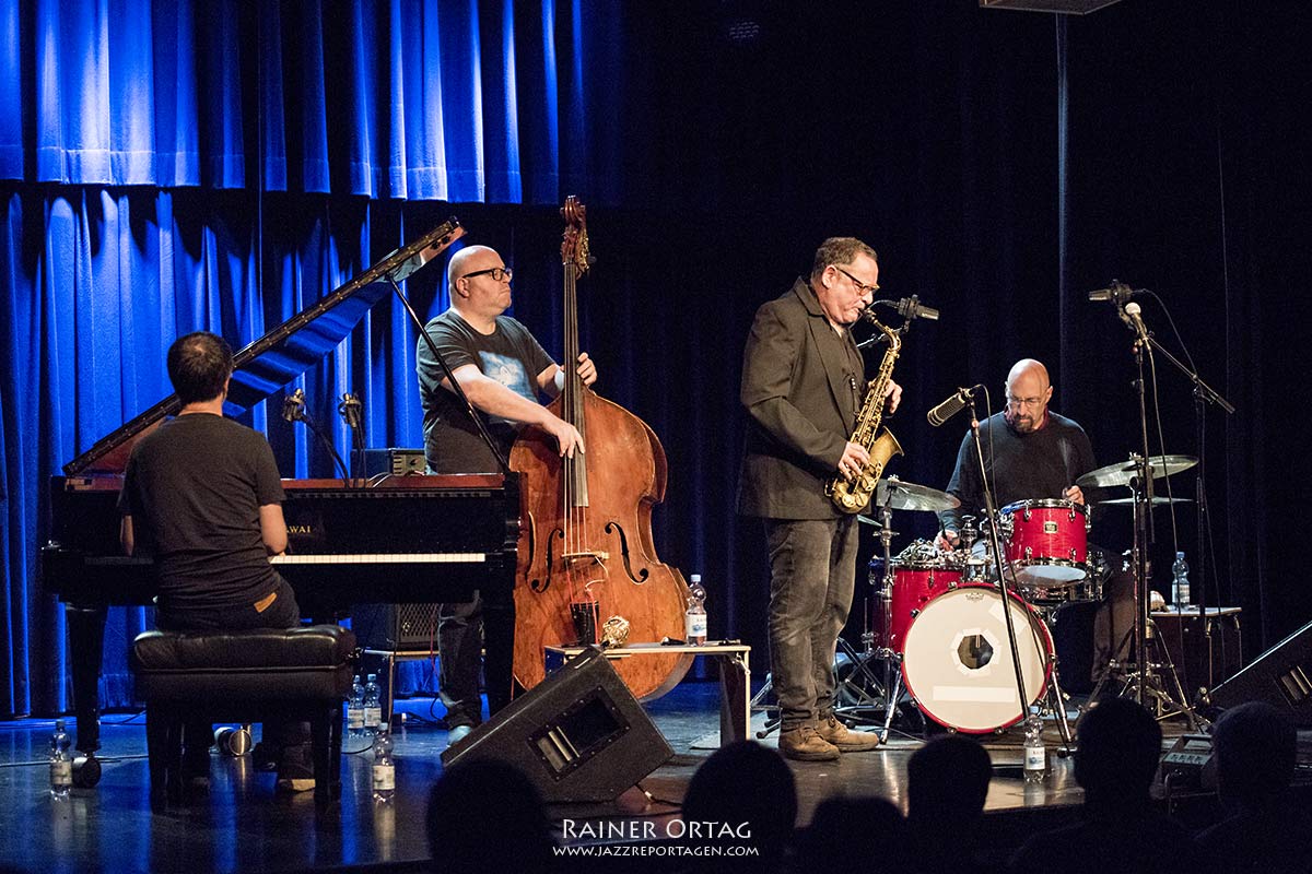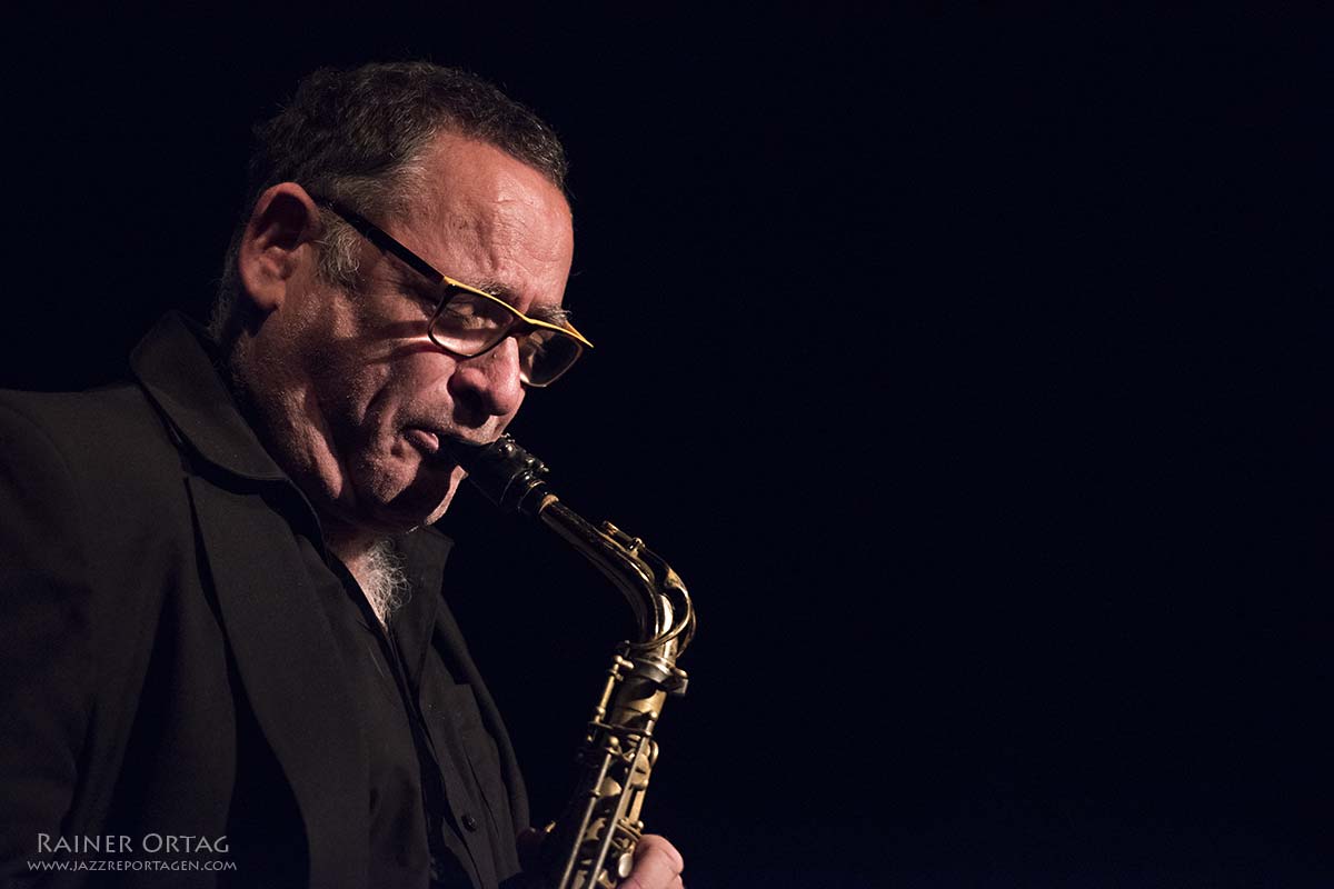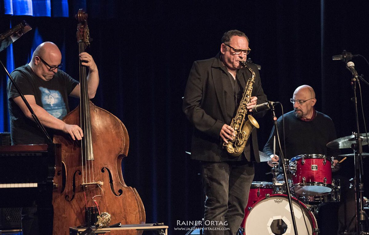 Einmal mehr bewies Gilad Atzmon, der britische-israelische Jazzsaxophonist und politische Aktivist, in der Dieselstrasse seine Vielfältigkeit. Nachdem er viele Jahre mit seinem Orient House Ensemble Bebop vom Feinsten mit orientalischer Note präsentierte und viele Alben einspielte, kam er nun mit seinem Coltrane-Programm nach Esslingen. Als ebenso wandelbar wie er erwies sich auch seine Band: Frank Harrison am Piano, mit dem er vor 20 Jahren das „Orient House“ gründete und Yaron Stavi am Bass, der sich bereits seit 17 Jahren für die dunklen Töne des Ensembles verantwortlich zeichnet. Nicht solange in der Band, aber bestens integriert ist der italienische Schlagzeuger Enzo Zirilli.