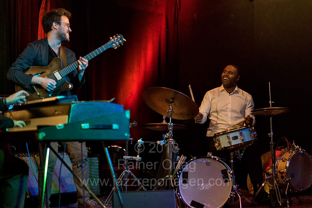 An Synthesizer und Fender Rhodes den gefeierten „Tastenmann“ Aaron Parks, der aus den Bands von Joshua Redman und Kurt Rosenwinkel bestens bekannt ist. Am Schlagzeug Kendrick Scott, der auch mit Herbie Hancock, Charles Lloyd, Kurt Rosenwinkel und Kurt Elling seine Kunst zum Besten gab.