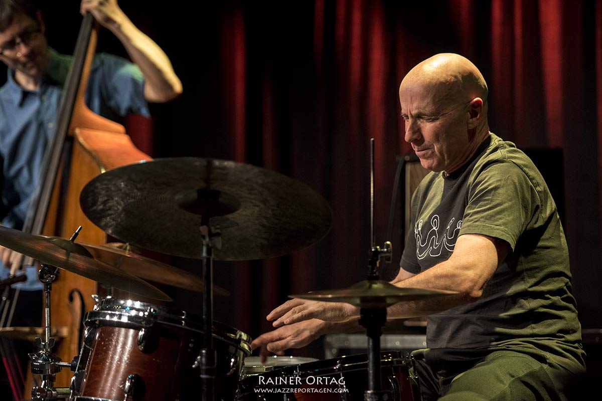 Joey Baron umschmeichelt sein Drum Set, auch der Altmeister an den Drums ist ein leiser, behutsamer Spieler. Meist nur mit den Besen arbeitend, verzaubert er mit seinem federnden Spiel. Oft mit bloßen Händen schlagend, erzeugt er auch unwiderstehliche Grooves oder setzt gelegentlich dem weichen Klang der E-Gitarre harte Kontrapunkte mit den Sticks.