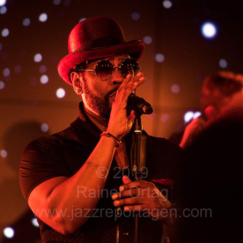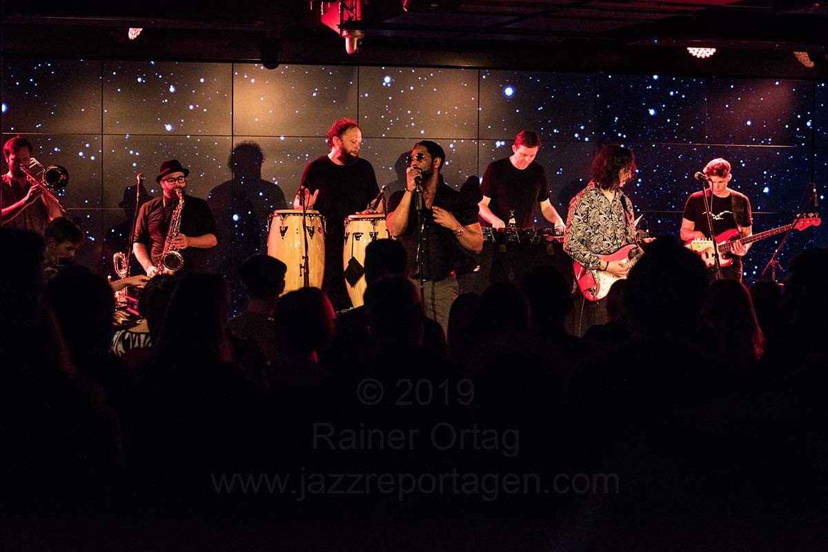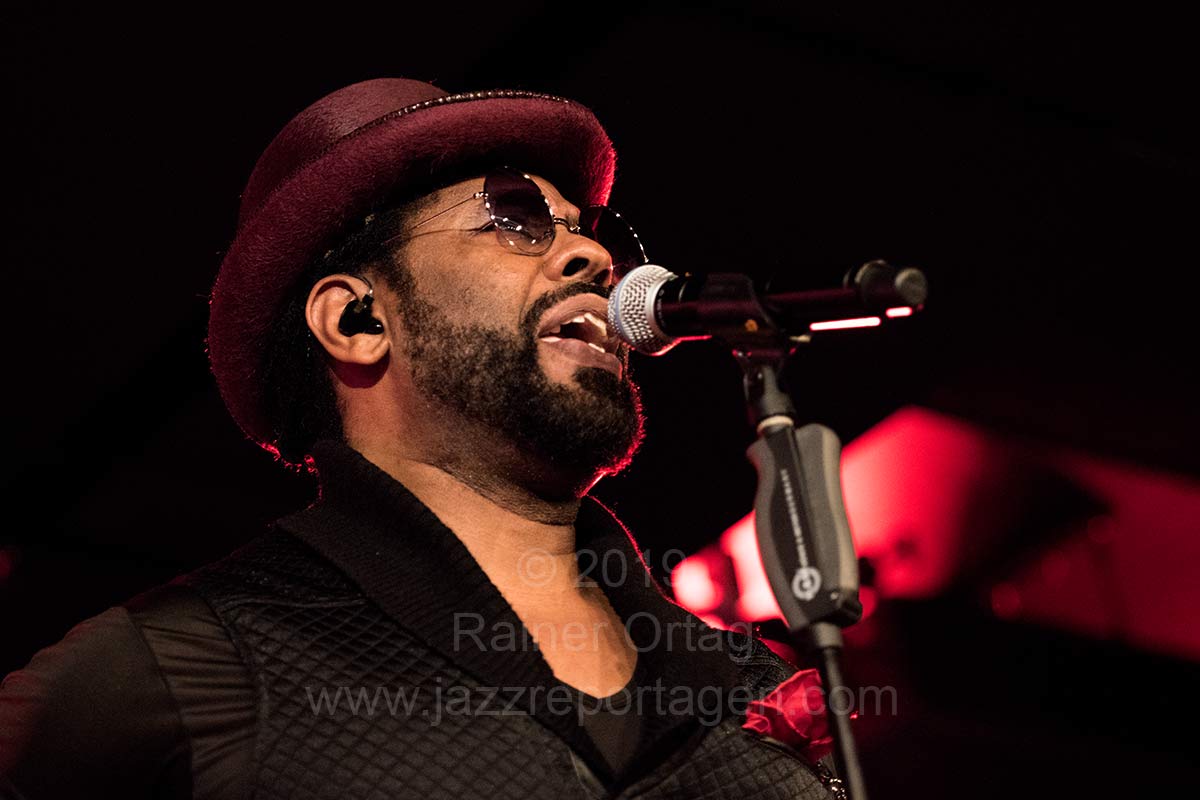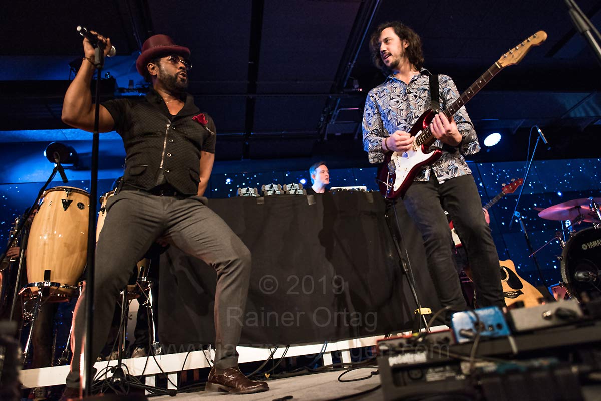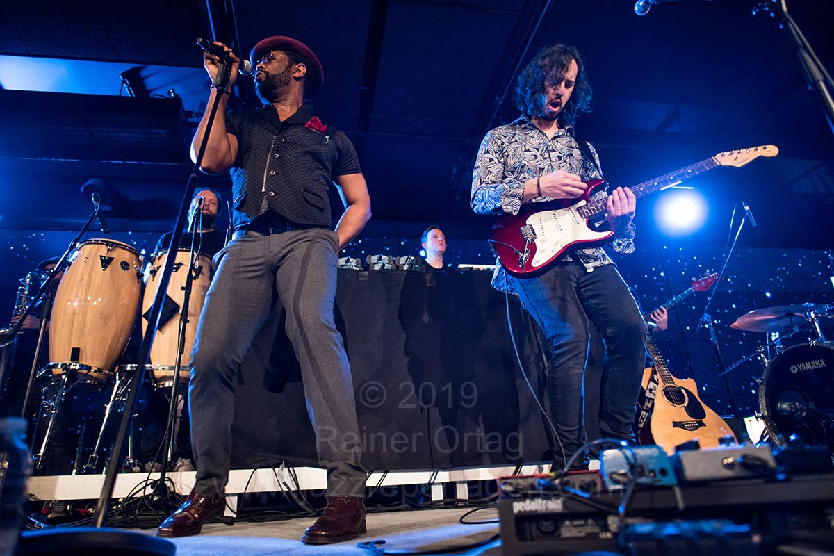 Bunt und schillernd wie die Stilrichtungen sind auch die immer wieder wechselnden Musiker, die jeweils ihre eigenen Vorstellungen hereintragen, wodurch die Vielfalt gewahrt wird und das Ganze immer spannend und wandlungsfähig bleibt. Für das Konzert in Stuttgart waren denn auch Musiker dabei, die zum ersten Mal mit auf Tournee sind, was denn auch dazu führte, dass nicht alles so klang, wie man es vielleicht erwartet hatte. Die angekündigten Rap- und Hiphopteile suchte man weitgehend vergebens, dafür wurde wunderbare R&B-Music geboten, die durch die herausragende Stimme des aus Chicago stammenden Paul Randolph oft verblüffend nahe am legendären Prince lag. Die Band bestand außer ihm aus Axel Reinemer, electronics, Stefan Leisering – percussion und keyboards, David LeMaitre – vocals und guitar, Christoph Adams – keyboards und Carl Michael Grabinger – drums, Stefan Ulrich – trombone, Robin Engelhardt – bass, sowie Axel Müller – sax, flute, baritone sax. Sie spielten druckvollen, mitreißenden Funk-Soul, der immer tanzbar war und da das Auditorium zum Glück nicht bestuhlt war, kam das Publikum schnell in Bewegung.
