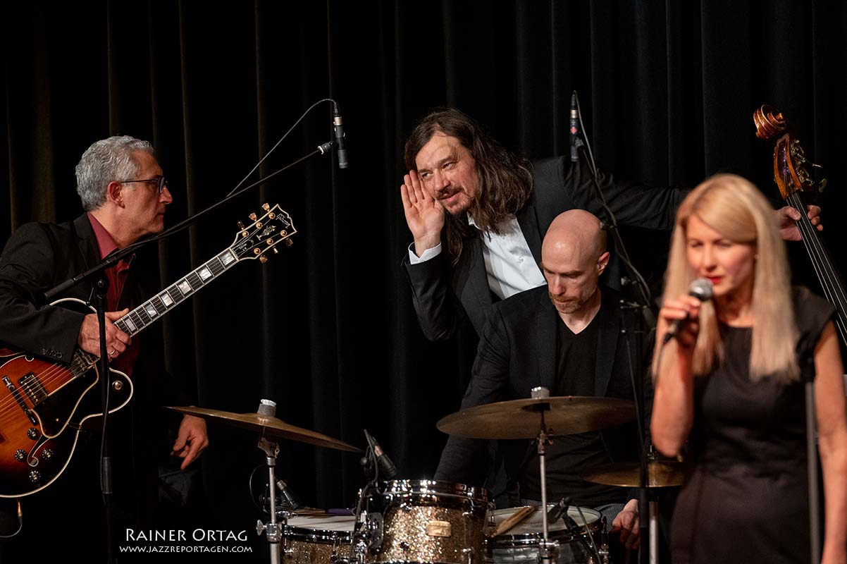 Ohne Umschweife wurde der Abend mit dem größten Erfolg von George Shearing begonnen. „Lullaby of Birdland“ war dann auch eine gute Einstimmung und brachte etwas Clubatmosphäre in den Konzertsaal. Tilman Jäger, wie immer sehr zurückhaltend, ließ die anderen Musiker gerne die Soloeinlagen übernehmen. Lorenzo Petrocca brachte das Publikum mit seiner Virtuosität zum Staunen. Neben den Titeln von Shearing selbst wurden auch Stücke gespielt, die er gerne zum Besten gab. Nina Michelle steuerte ebenfalls drei Kompositionen bei, mit denen sie alle zu begeistern wusste.