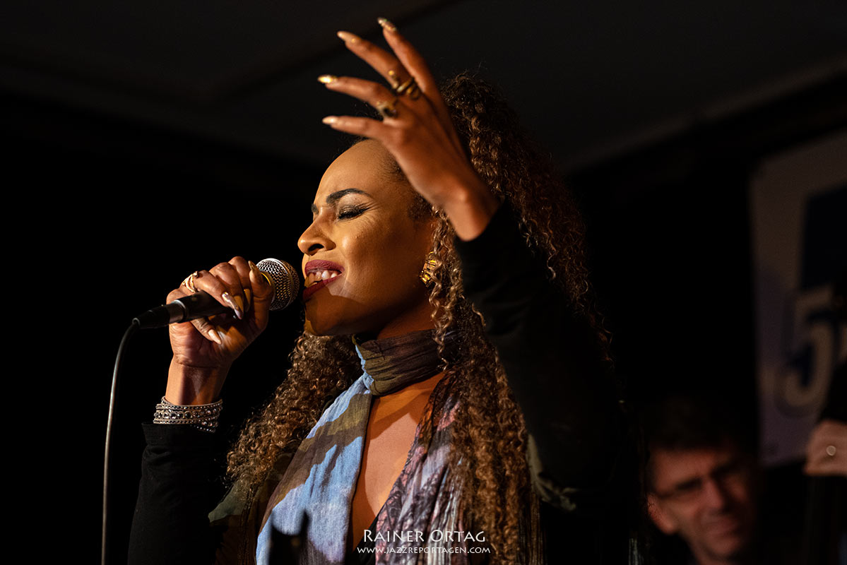 Lauren Hendersons warme Altstimme fasziniert. Rauchzart und trotzdem eindringlich, manchmal fast gehaucht einzelne Silben, Worte oder Textzeilen in Raum gestellt. Sie sind immer in fließender Bewegung, die New Yorker Sängerin aber auch Phishbacher, die Begleitband des ebenfalls seit vielen Jahren in New York beheimateten österreichischen Pianisten Walter Fischbacher. Das Trio mit Petr Dvorsky am Bass und Alex Bernath, Drums, bildet eine verlässliche, gleichzeitig auch lebendige und pulsierende Basis für Henderson, deren Songauswahl und Auftritt zeigten, dass sie sich ihrer karibisch – afroamerikanischen, auch katalanischen Wurzeln bewusst ist und sie leuchtende Blüten hervorbringen.