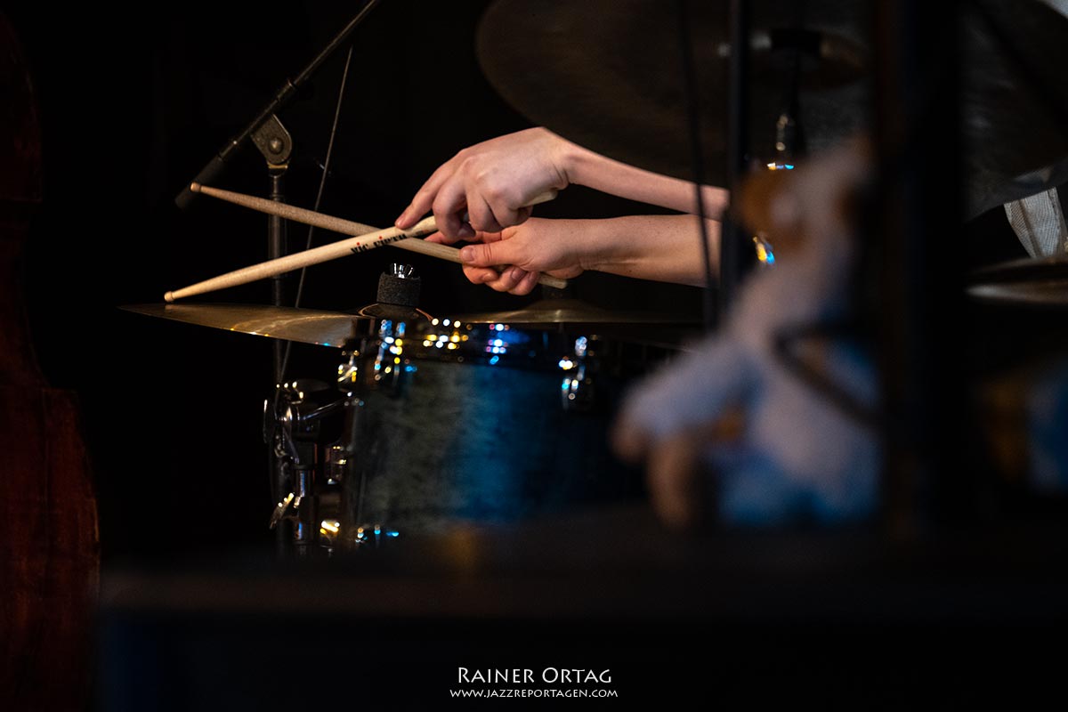 Lauren Henderson und Walter Fischbacher – beide sind sie seit Jahren in New York zuhause, auch in der dortigen Musikszene verankert – haben sich nicht etwa dort, bei einem Club Gig getroffen, nein, es war eine Booking – Agentur in Tschechien, das erzählt Fischbacher nach dem Konzert, die die Formation zusammengebracht hat. Fischbacher steht mit seinem Trio für hochenergetisches Spiel, für mitreißendes Solospiel und dichten Bandsound. Im Club Voltaire blitzte das immer wieder in kürzeren Solopassagen auf und auch im allerersten Stück des Abends, dem Beatles – Titel Eleanor Rigby, so mitreißend variantenreich und gefühlvoll interpretiert, dass mindestens jede*r zweite im Publikum mitsang, im Kopf, ´…all the lonely people…..`