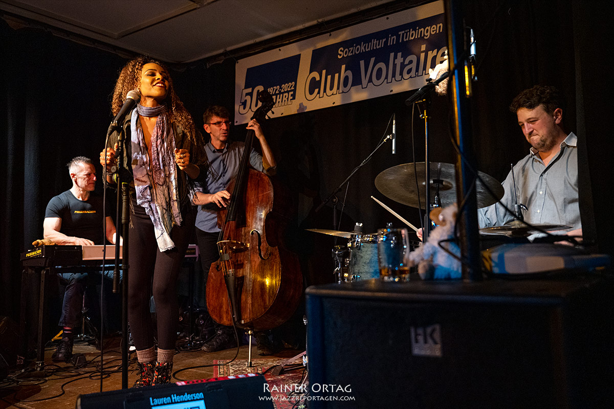 Es ist kalt geworden, fast plötzlich, scheint es, in diesem Herbst. Wer an diesem Spät – September – Tag Zuflucht in oder vor der Welt suchte, war im Tübinger Club Voltaire am richtigen Ort und wurde dafür belohnt, die Wohnung nochmal verlassen zu haben. Es war eine Doppelpackung Energie und Wärme, die Phishbacher und die Sängerin Lauren Henderson in den restlos ausverkauften Club verteilten. Warmes karibisches Rhythmus- und Farbenspiel, Cole Porter – Songs, Latin, Jazz und gefühlvoll – melodischen Eigenkompositionen der New Yorker Sängerin verbanden sich zu einer herzerwärmenden Melange.