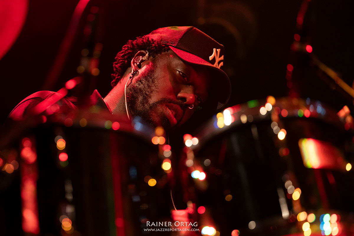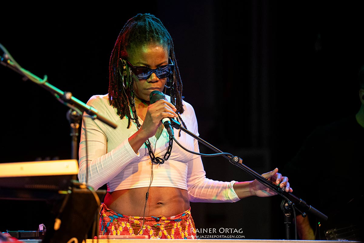 Das Publikum, das sich fast eine Stunde lang geduldig vor den Türen versammelt hatte, um auf den Abschluss des Soundchecks zu warten. Sie tauchten nun in die dichten, elektronischen Klänge und rhythmischen Grooves ein, zu denen Tirolien und ihre Band auch auf der Bühne tanzten. Eine anfängliche Zurückhaltung des durchmischten Publikums verflog schnell, als die Sängerin ihre facettenreiche und kraftvolle Stimme erhob. Tirolien, die aus Guadeloupe stammt und mit ihrer Band GeminiCrabs in Montreal künstlerisch tätig ist, beherrscht eine beeindruckende Bandbreite an Stilen. Von tiefem Soul über verspielte Scats und präzise Raps in Französisch bis hin zu modernen Vocal-Art-Elementen.
