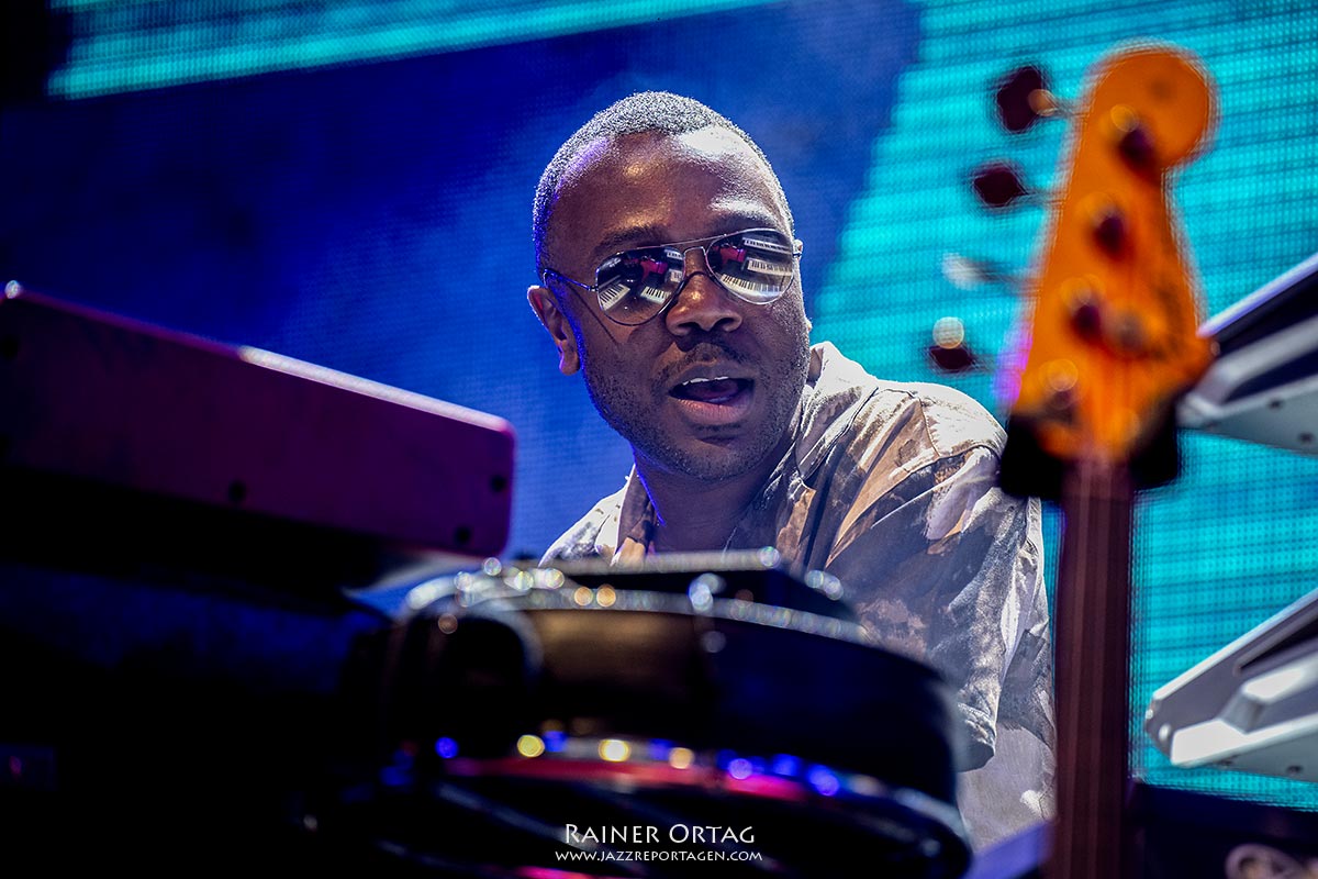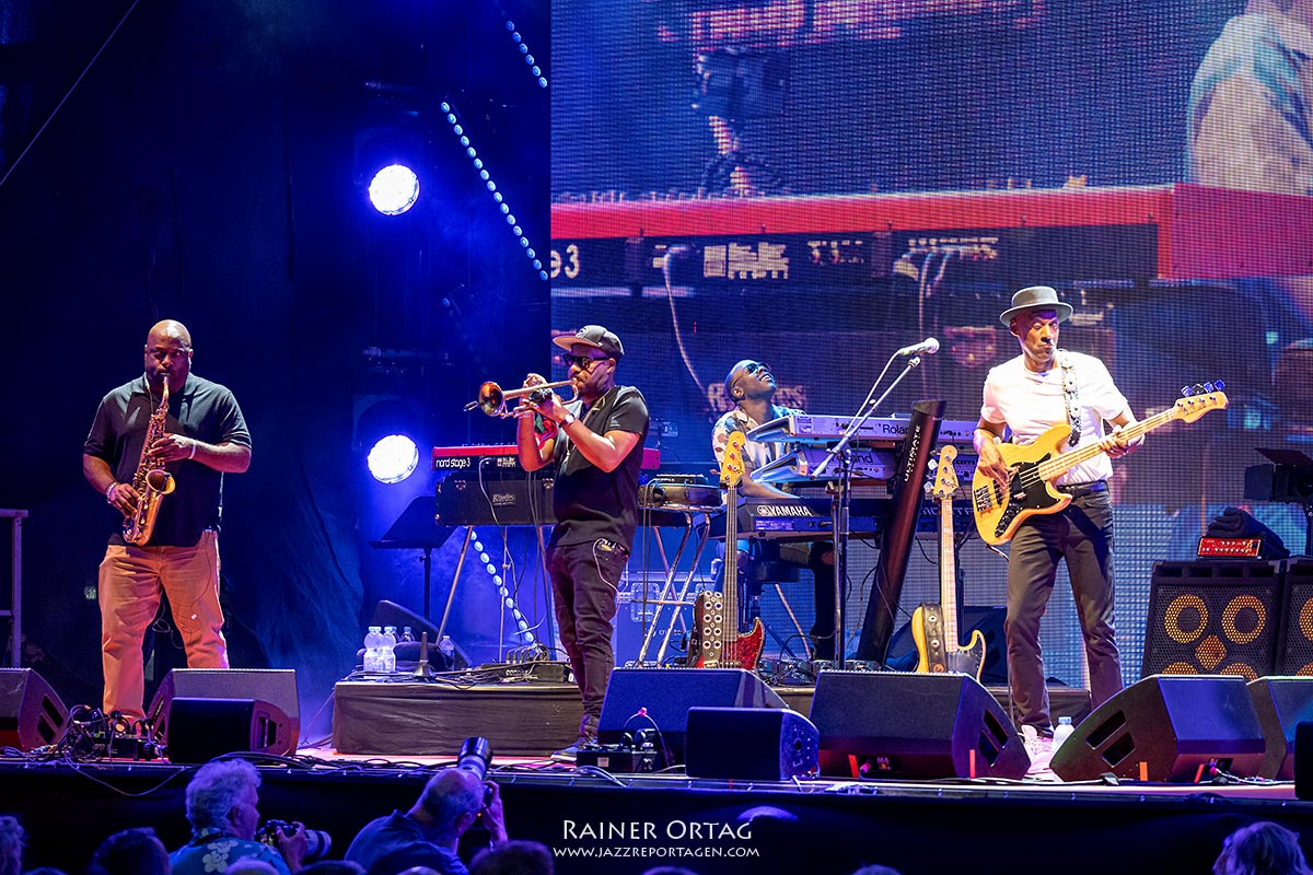 Funky geht es zur Sache und die Bläserriffs, die folgen, setzen weitere Duftmarken und lassen ahnen, dass diese Vorspeise zu einem delikaten Funkmenü erster Sahne führen wird. „I’m so happy being back here in Stuttgart“, strahlt Marcus Miller nach dem Opener. Geraume Zeit geht es anschließend mit dichten Rhythmen weiter, bis mit einer Homage an Jaco Pastorius, dem legendären Bassisten von Weather Report, dann auch mal Platz für eine Ballade geschaffen wird. Diese Nummer bringt die Klasse der einzelnen Musiker noch mehr zur Geltung, da alle ausführlich solieren dürfen.