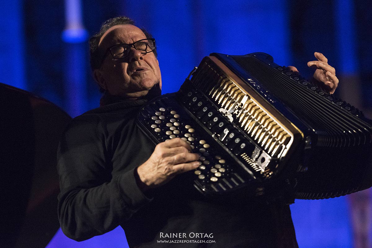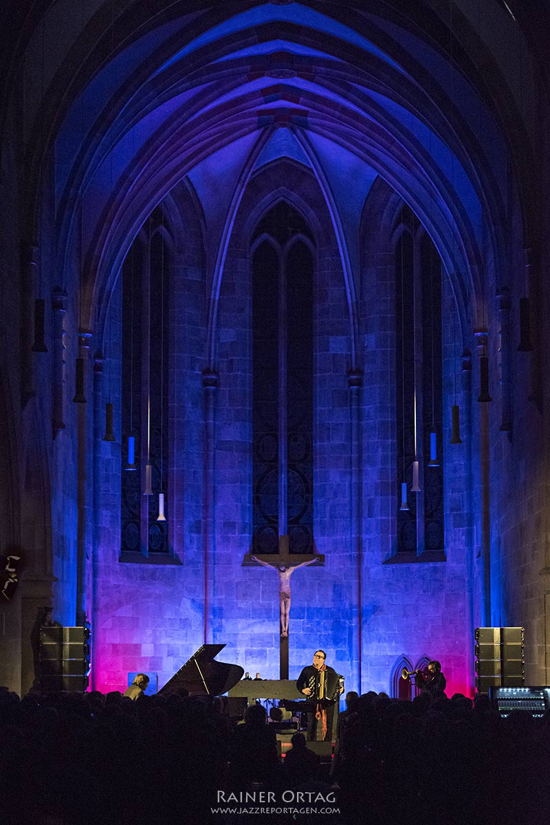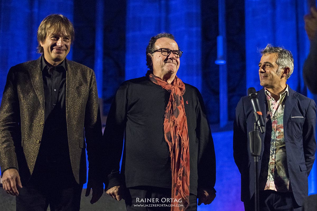 Los geht’s im Münster St. Paul mit dem gefeierten Trio Mare Nostrum. Das alte Sprichwort, dass aller guten Dinge drei sind, hat selten so gut gepasst wie bei diesem Trio des sardischen Trompeters Paolo Fresu, des französischen Akkordeonisten Richard Galliano und des schwedischen Pianisten Jan Lundgren. Mit ihrem dritten Album haben sie nun ihre Trilogie mit Liedern vom nördlichsten bis zum südlichsten Ende des europäischen Kontinents abgeschlossen.
