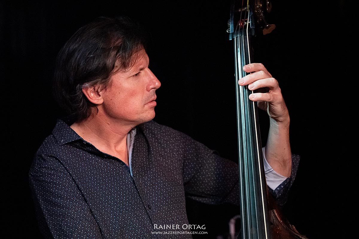 Der Pappelgarten im Reutlinger Norden, liegt recht abseits in der Nähe der Stadtteile Orschel – Hagen und Rommelsbach und irgendwo zwischen der Ausfallstraße Richtung Stuttgart und dem Friedhof Römerschanze. Der Pappelgarten ist ein Kult Ort. Für Musikfreund*innen aus der Region und für Jazzmusiker*innen – wenn man’s ganz groß will – aus aller Welt. Biedere Tischtücher, ein Adventskranz neben der Bühne, Nils Wogram räkelt sich auf einer Art Diwan neben der Theke, vorkonzertliches Relaxen bei Kaffee oder Tee. Soll heißen: Hier scheinen sich auch recht namhafte Jazzmusiker*innen wohl zu fühlen.