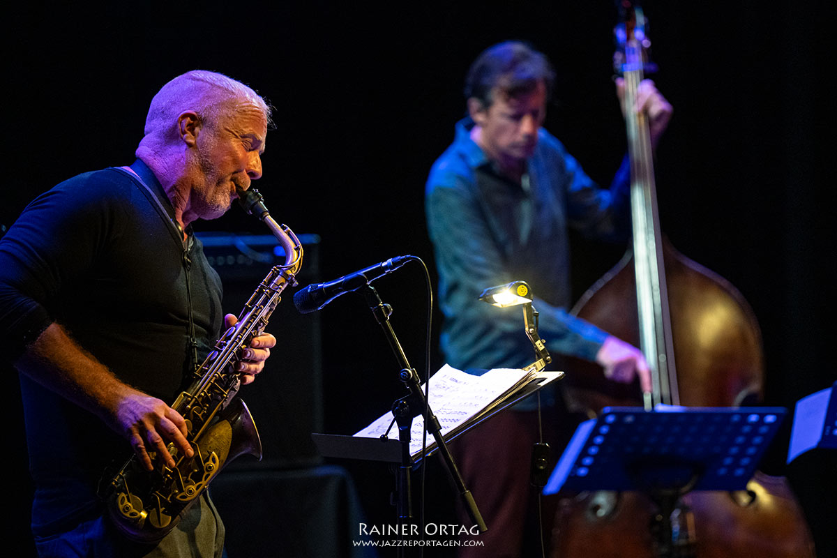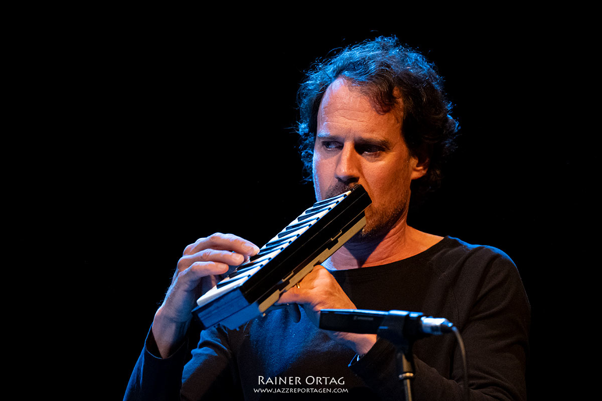 Schöne Arrangements, feine Dynamik und jede Menge kreative Unisono-Licks -ein- und zweistimmig-, ziehen die Besucher in Bann und lassen aufhorchen. Chrisholm bläst sein Instrument bisweilen so rund und zart, dass man ihm das Prädikat „Mietshaustauglich“ angedeihen lassen könnte. Aber natürlich nicht nur dies; das Bläserduo jagt mit äußerster Präzision durch die Skalen und sorgt so für die nötige Würze, die das Jazz-Menü verfeinert. Wograms Zutaten heißen: Polyphones Posaunenspiel, wie es nur wenige können. Seine atemberaubende „Dirty Play“-Sing- und Grunzstimme schaffen eine einzigartige Melange mit den reinen Posaunentönen.