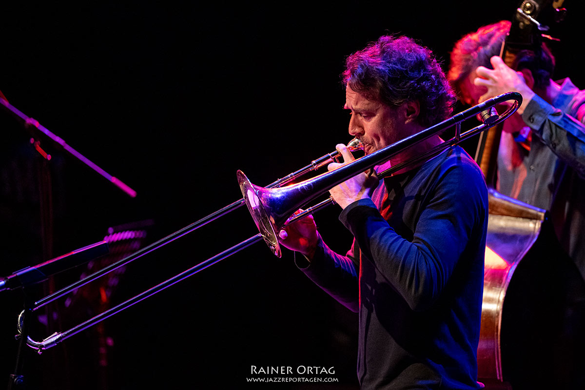 Bei den 35. Theaterhaus-Jazztagen verzichtet wohl einer der besten Posaunisten der europäischen Jazzszene auf technischen Schnickschnack. Nils Wogram und seine Root 70 haben‘s auch gar nicht nötig.