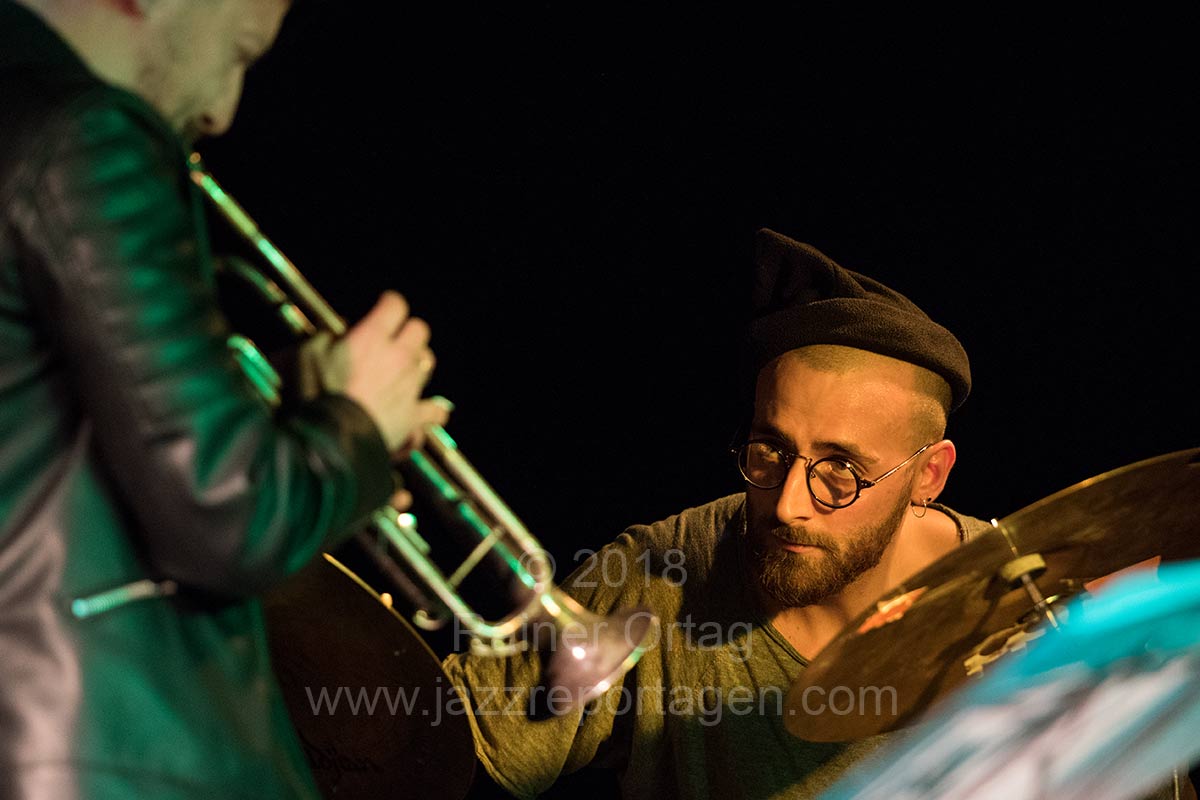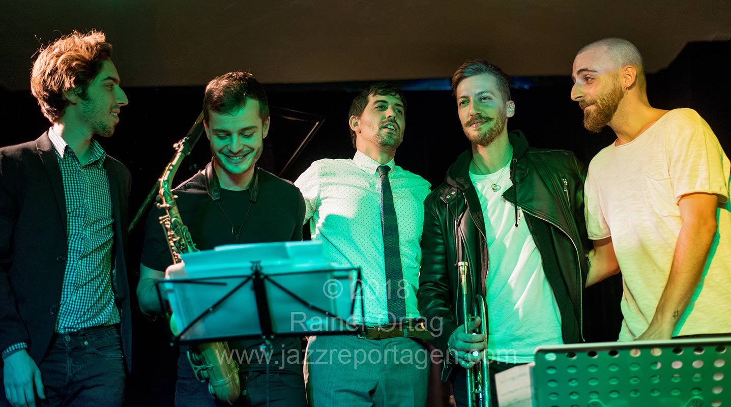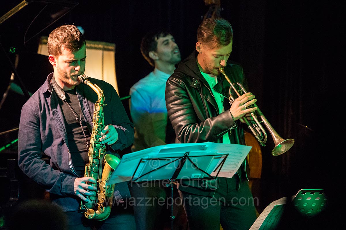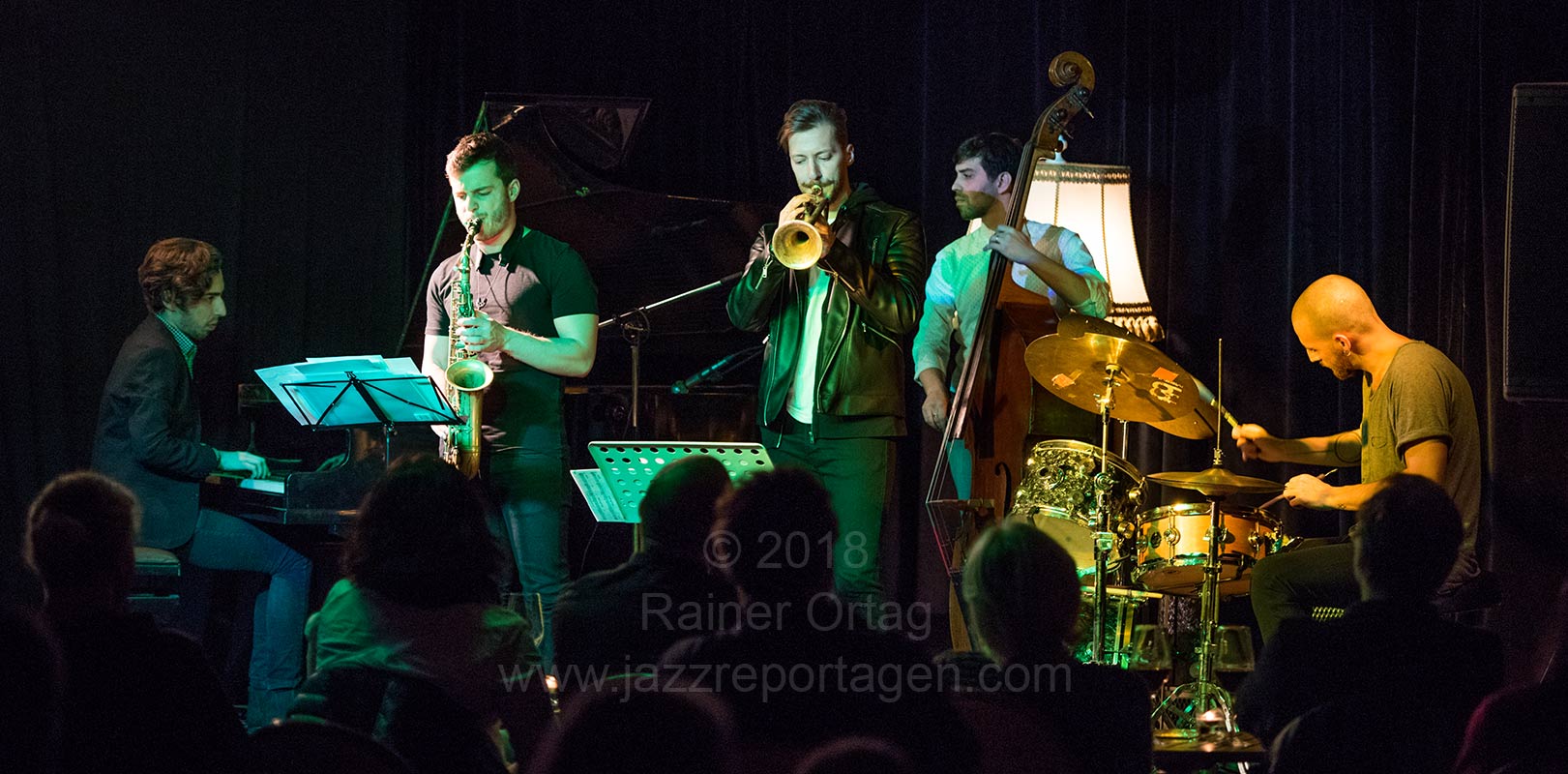 Die Band ist die erste eigene Formation von Noam Wiesenberg. Neben eigenen Kompositionen gaben sie auch „Pannonica“ von Thelonious Monk zum Besten. Die große Freiheit bei den Improvisationen führte zu großartigen Kombinationen. So wechselte ein Pianosolo zum klassischen Pianotrio und weiter zum Duo der beiden Bläser, die sowohl im Dialog als auch solistisch brillierten. Ein erfrischend unkonventioneller Jazzabend mit herrausragenden Musikern.