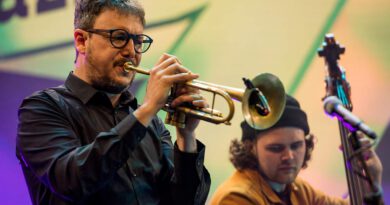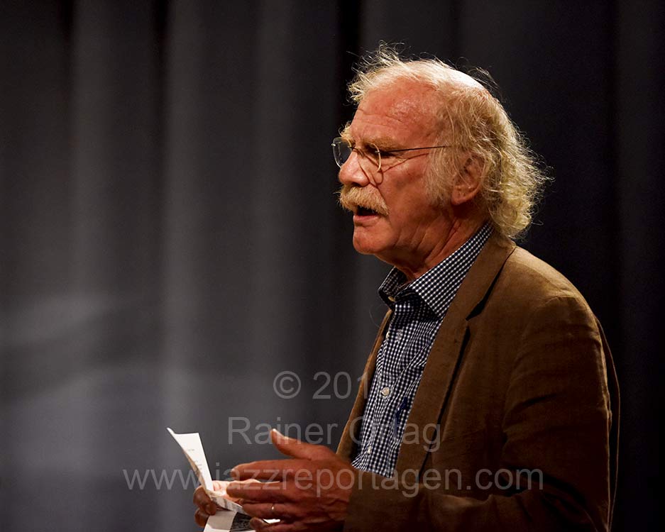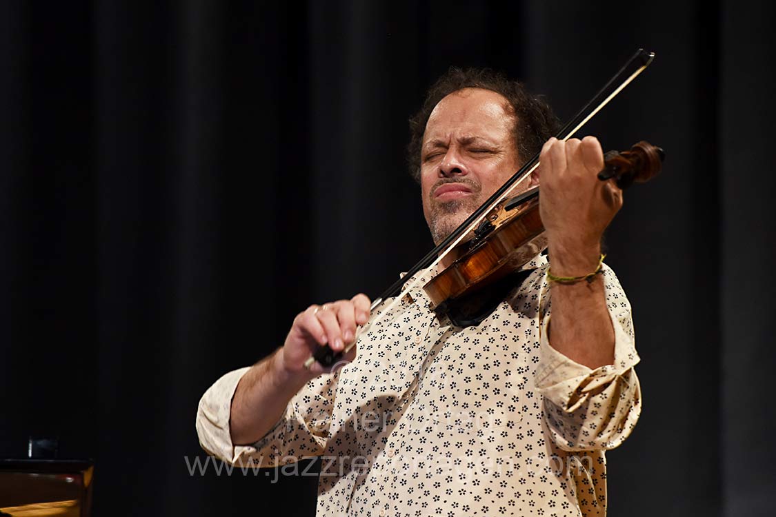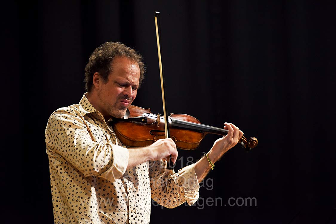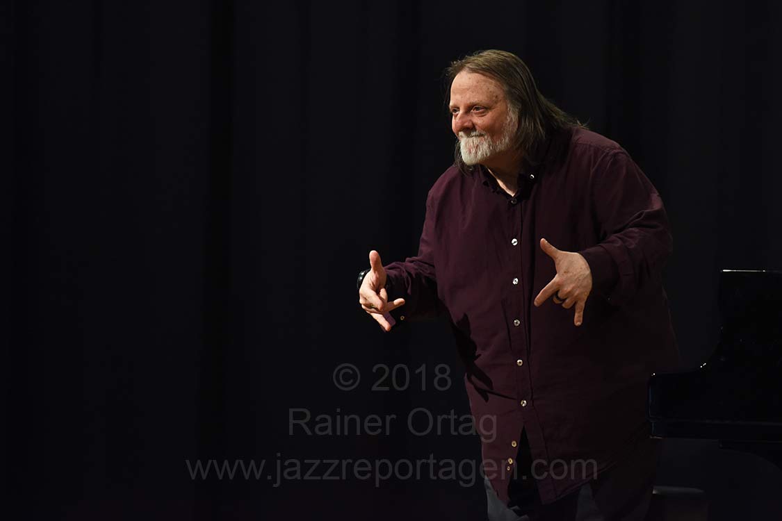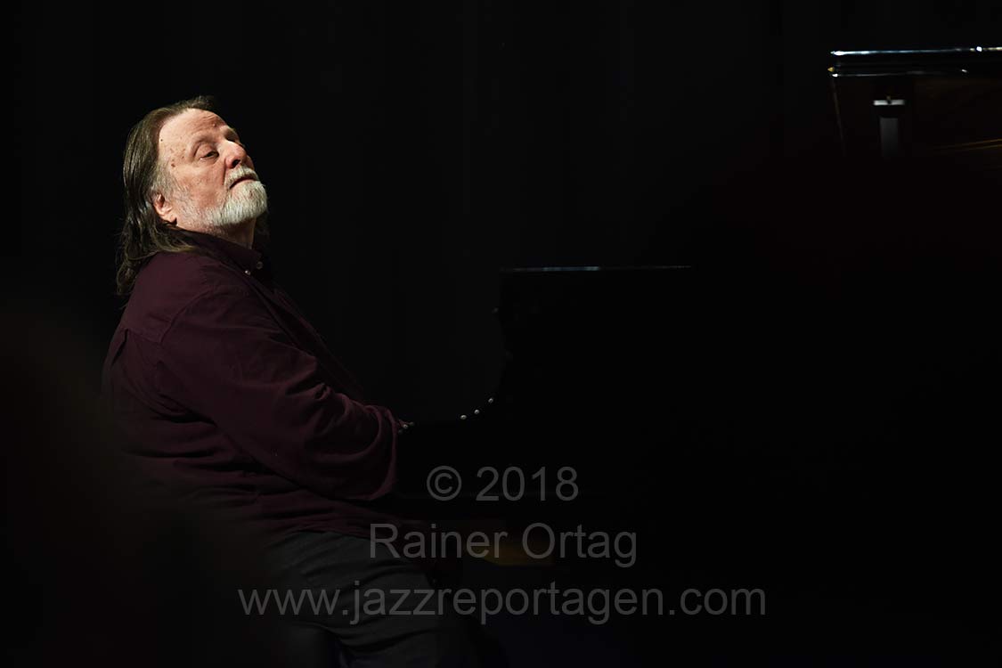 Huebners Kompostion „Ground Zero“ ließ das Publikum auch gehörig erschaudern. Hübner ging dabei, Violine spielend, hinter den Zuschauern durch den dunklen Raum während Beirach weiterhin auf der Bühne spielte.