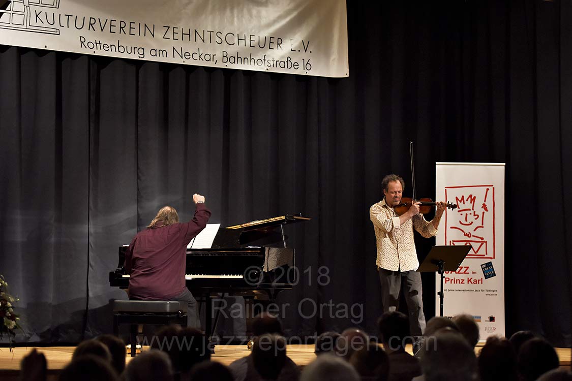 Der „Kulturverein Zehntscheuer Rottenburg“ und der Tübinger Jazzveranstalter „Jazz im Prinz Karl“ präsentierten zwei ausgezeichnete Musiker: das Duo Richie Beirach – Gregor Hübner.
