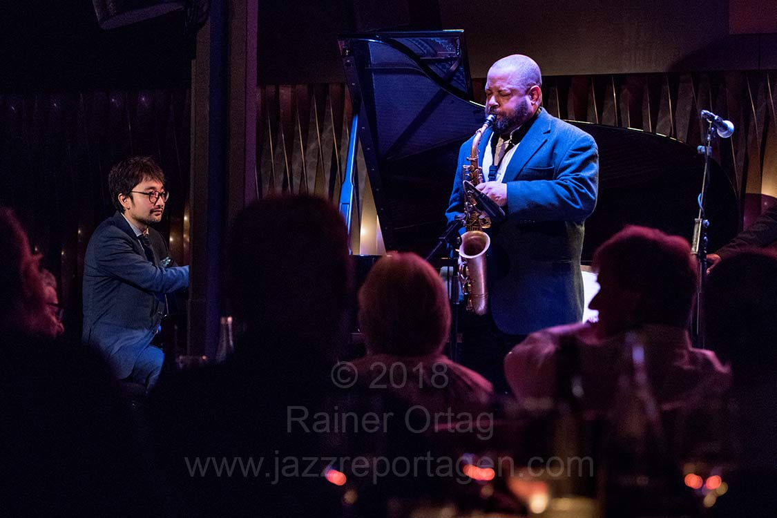 Seit vielen Jahren spielt er zusammen mit dem Saxophonist und Flötist Justin Robinson, der sich unter dem Einfluss der Musik von Charlie Parker und Jackie McLean ganz auf das Altsaxophon verlegt hat. Die beiden Musiker ergänzen sich nicht nur musikalisch perfekt, sie setzen auch mit Vergnügen nach dem Konzert ihre Spielfreude weiterhin fort… (wie bereits beim Jazzfestival Esslingen 2015… )