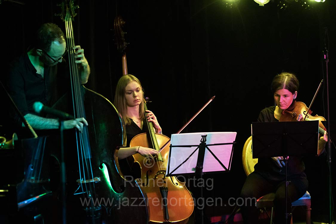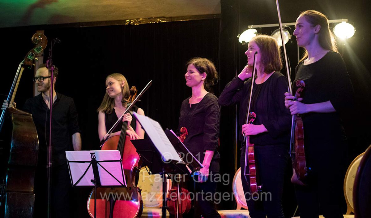 Wir hörten den Pianisten, Trompeter und Komponist Sebastian Studnitzky mit seinem Quartett im März in Tübingen und im Dezember, auf Einladung des Vereins Themu, im Reutlinger Pappelgarten. Zwei außergewöhnliche Konzerte mit zwei sehr unterschiedlichen Besetzungen: Gitarre und Schlagzeug in Tübingen und hier nun ein Streichquartett. Cello, Viola und zwei Violinen wurden ausdruckstark gespielt von Kornelia Jamborovicz, Leila Weber, Katharina Landsberg und Olga Holdorff. Mit dabei war außerdem der stets hochkonzentrierte Paul Kleber am Kontrabass.