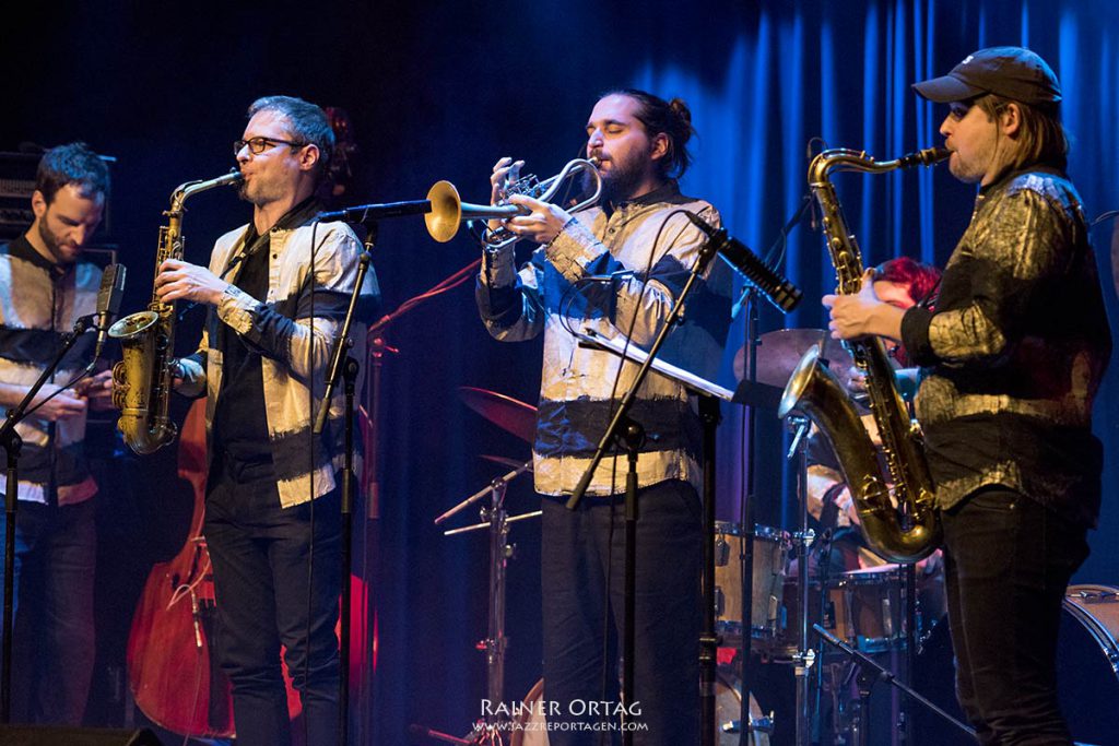 Die sieben Männer (!) spielen aber alles andere als uniform, zwar wie eine Einheit, aber was für eine! Die junge österreichische Formation überzeugt vor allem „live”. Dreh und Angelpunkt ist Bandleader und Bassist Lukas Kranzelbinder, der alle Stücke komponiert hat, das Publikum mit launigen Ansagen bestens unterhält, sich musikalisch aber niemals in den Mittelpunkt drängt.