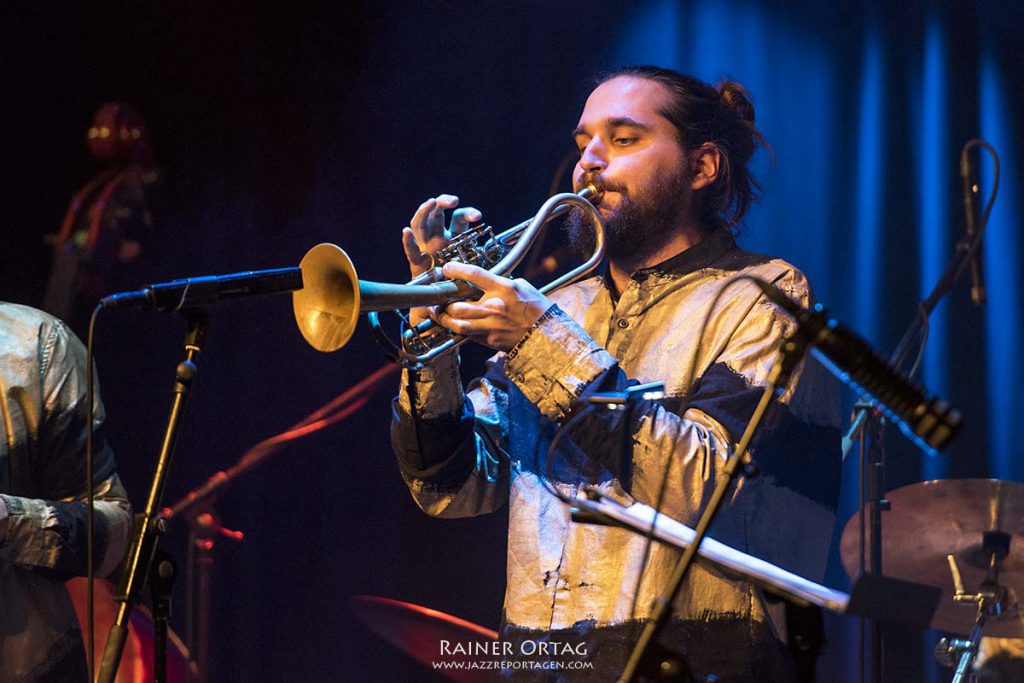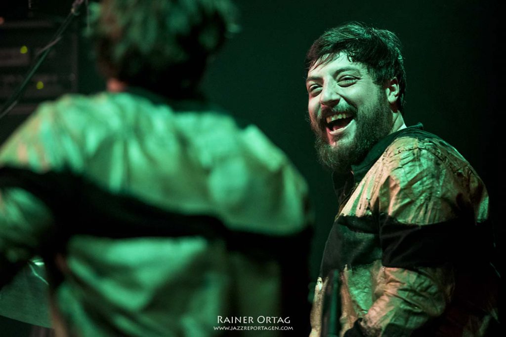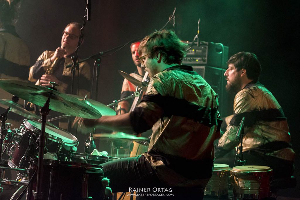 Jazz im Prinz Karl holte Lukas Kranzelbinder mit Shake Stew nach Tübingen, weil er beim SWR NewJazz Meeting 2018 überzeugte, ebenso wie Mario Rom, der auch bei Shake Stew eine vorzügliche Trompete spielt. Die beiden Drummer Nikolaus Dolp und Andreas Haberl sind keine „Rhythmusknechte” und versuchen erst gar nicht, sich gegenseitig in einer „Drumbattle” zu übertrumpfen. Sie spielen filigran miteinander, hören aufeinander, lassen sich Raum und vereinen mitunter ihre Musik zu einem Schlagzeugfeuerwerk, wie man es noch nie gehört hat.
