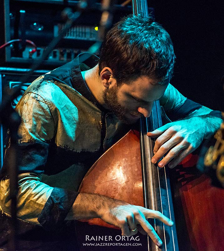 Dasselbe gilt für die beiden Bassisten, die aus ihren Instrumenten alles herausholen: sie spielen akustisch und elektrisch, Kranzelbinder zupft und klopft und greift beherzt in die Saiten. Der oft mit Bogen gestrichene Bass von Oliver Potratz klingt schlicht herausragend.