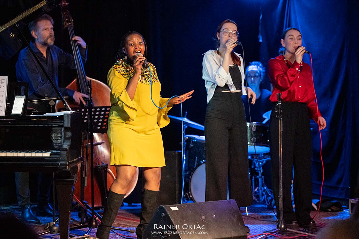 Die beiden Sängerinnen Natalie Mischok und Julia Fröhlich treten im Ensemble sowohl als Backgroundsängerinnen als auch als Solistinnen in Erscheinung. Beide studieren an der HMT München und haben sich im Laufe ihres Studiums intensiv mit dem Thema Cape Jazz/Southafrikan Music auseinandergesetzt.