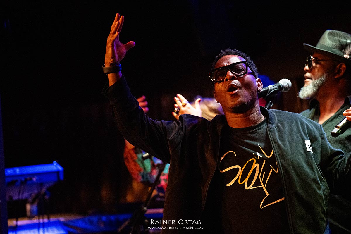Die Soul Diamonds eröffneten das Konzert mit einem kraftvollen Instrumentalstück „Weekend in L.A.“, das die Zuhörer sofort in den Bann zog. Weiter ging es mit dem Klassiker „Morning Mr Radio“. Die funky Rhythmen und die geschmeidigen Melodien schufen eine Atmosphäre, die den Jazzclub in eine pulsierende Oase der Soul-Musik verwandelte. Mit dem Popsong „Where is the Love“ von den Black Eyes Peas wurde eine weitere Facette aufgezeigt. Die charismatischen Sänger der Soul Diamonds, mit ihren Stimmen, die von tiefer Seele und großer Emotionalität geprägt sind, entfesselten eine klangliche Woge, die das Publikum mitriss, angeheizt von dem amerikanischen Rapper Soul Elements, der derzeit in Frankfurt lebt.