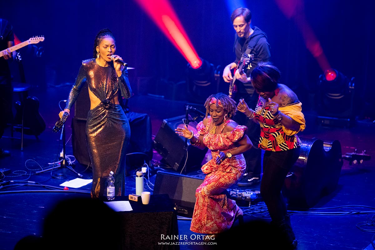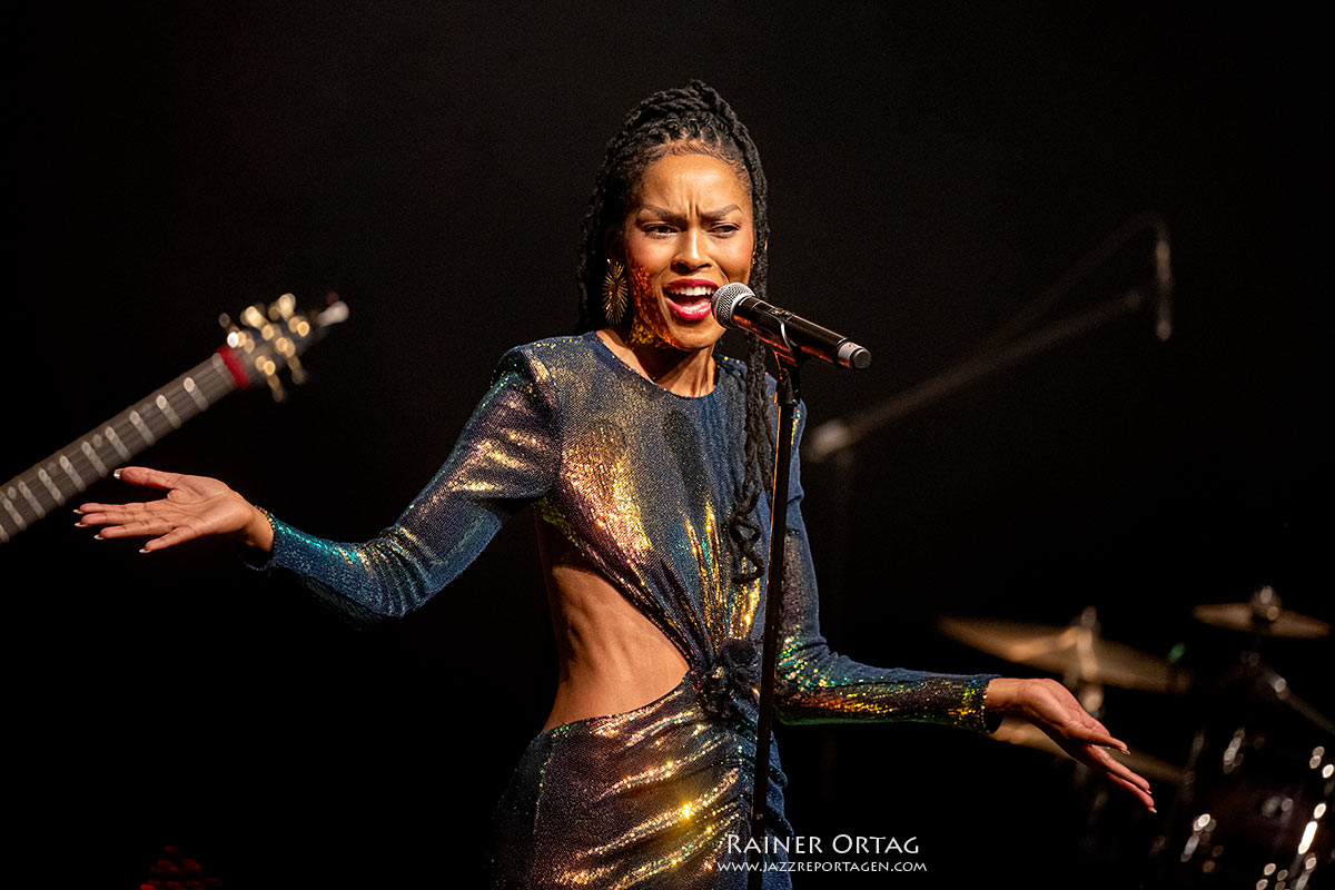Wieder mal ein Heimspiel, nicht für den VFB der in einem Kilometer Luftlinie entfernt zeitgleich im Stuttgarter Stadion gegen die Bayern aus München antrat, nein, Sangeskunst statt Ballkunst wurde an diesem Abend von der in Stuttgart wohnhaften südafrikanischen Sängerin Thabilé im gut gefüllten Stuttgarter Theaterhaus präsentiert. Seit 2016 lebt und arbeitet Thabilé zusammen mit dem Gitarristen Steve Bimamisa nun schon in der schwäbischen Metropole. Aufgewachsen ist sie in Dlamini, einem Township von Soweto (nach dem ihr erstes Album „Dlamini Echo“ benannt ist). Über ihren Vater weiß sie nicht viel, erzählt sie an diesem Abend, sie wächst bei ihrer Mutter, Großmutter und Tante auf. Die Mutter, selbst als Sängerin mit dem bekannten „Soweto Teachers Choir“ öfters auf Tournee, ermuntert ihre Tochter im zarten Alter von acht Jahren den Schul- und Gospelchor zu besuchen – und vermittelt Thabilé dadurch schon früh die Liebe zur Musik. Soul und Gospel hat sie quasi im Blut. Ihre ethnischen Wurzeln liegen in einem Township im südafrikanischen Johannesburg. Die Single „Play it Back“ widmete sie also sicher nicht ohne Grund dem überwältigenden Gefühl der Mutterliebe.