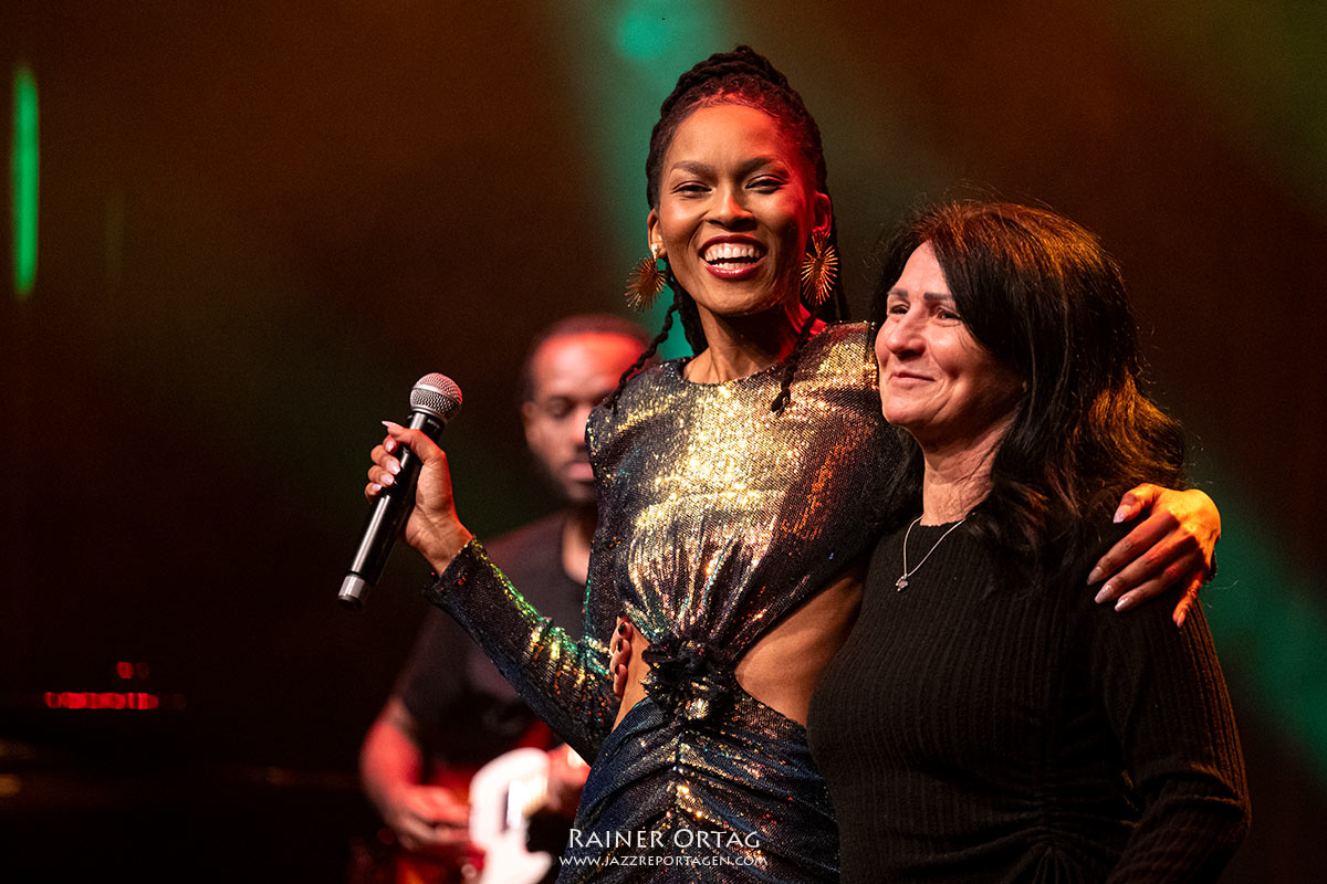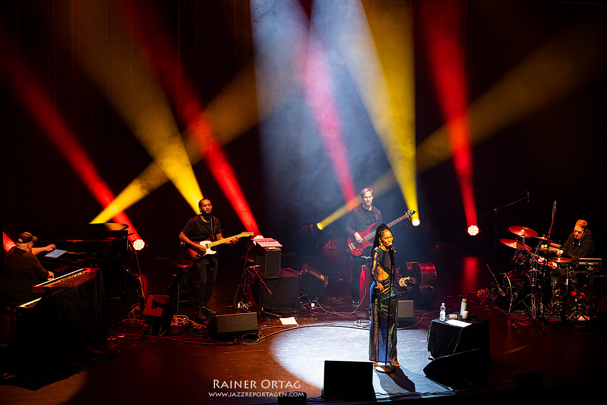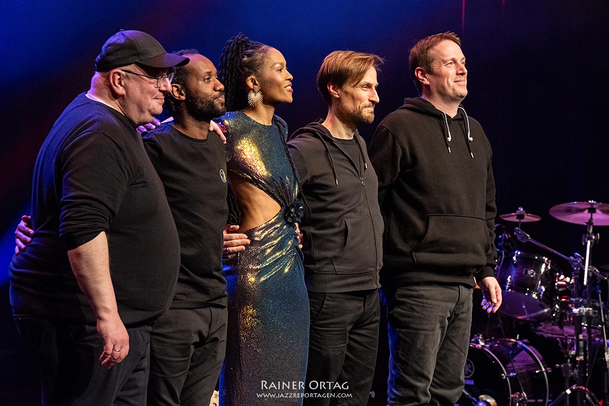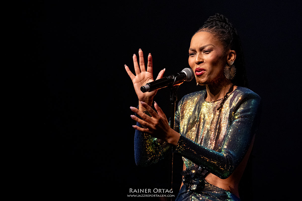 Jeder Song hat seine Geschichte, die in einer sympathischem Mischung aus Südafrika-Englisch und „Schwäbisch-Deutsch“ von der Sängerin vor jedem Lied erzählt wird. So geht eine Reise musikalisch wie textlich von Captown bis Kairo, oder ist ein Plädoyer im Namen der Liebe für die Millionen von Flüchtenden auf dieser Welt. Die Soundmelange aus Pop, Jazz, Soul und Afro wird mit einer angenehm warmen Stimme präsentiert und von einer herausragend harmonierenden Begleitband untermalt. Die Sinnhaftigkeit und die Tiefe der Texte in Verbindung mit dieser stimmlichen Präsenz, entfalten eine zutiefst berührende Wirkkraft, die sich in die Seele Zuhörer einschleicht und eine innere Wärme entfacht. Niemand ist perfekt ist die Botschaft des Songs „In repair“, jedoch befindet sich der Mensch beständig in dem Zustand in dem er sich immer wieder sinnbildlich reparieren kann, sofern er in der Lage ist sich ehrlich zu reflektieren. Musikstücke die innerlich bewegen, aber die Stimmung wandelt sich beim Titelsong ihres letzten Album „Read my Lips“, als die äußere Bewegung beginnt. Denn Sitzen geht bei dieser Rhythmik nicht, bereits nach dem fünften Song tanzt der Saal und keinen hält es mehr auf den Sitzen. Tanzen, Klatschen, Singen, das Publikum ist Teil dieser Performance.