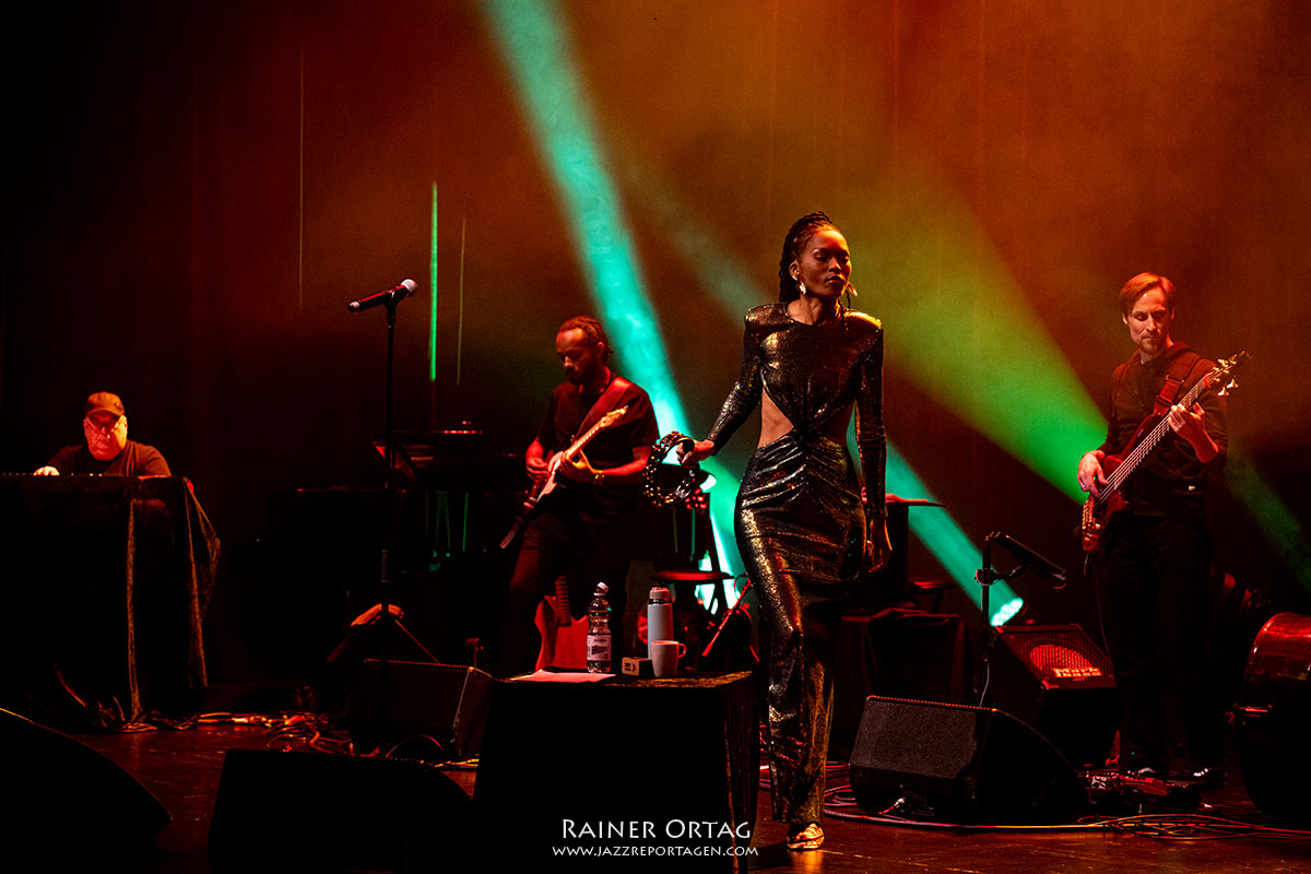 Die Lieder der nahbaren Sängerin, die auch gerne mal durchs Publikum wandert, wollen wachrütteln und ermutigen. Es ist keine reine „Weltmusik“, sondern ein hochklassiger Mix, der sanft und weich, aber durchaus auch mal rockig und rau daherkommt. Die Begleitband angeführt von ihrem Produzenten und Gitarristen Steve Bimamisa hat sämtliche Stilarten traumwandlerisch im Griff, da kommt auch schon mal ein Reggae um die Ecke, abgelöst von funkelnd geschliffenen Soulsongs. Bimamisas Gitarrenspiel bietet ein grandiose Bandbreite, er kann die Saiten sanft streicheln, oder sein Instrument in einem eigentümliche „African-Style-Sound“ erklingen lassen. Markus Schoelch an den Keys, begeistert durch rasende Solos an der Hammondorgel, Daniel Schwenger (Drums) und Steffen Hollenweger bieten die rhythmische Basis für Thabiles „Musik der Freude und der Freiheit“. Ach ja, einen Crashkurs in Sachen südafrikanischer Lautsprache gabs auch, als die Sängerin eine Zuschauerin auf die Bühne zitierte um ihr, diese für westliche Ohren ungewöhnliche Sprache rudimentär beizubringen, was leidlich gelang, aber mit viel Humor gewürzt war. Es war ein Abend der textlich oft den Finger in verschiedene Wunden legte, aber in erster Linie ein Abend der Hoffnung vermittelt und bei manchen der Zuhörer ein Funkeln in die Augen zauberte, wie Thabile es in einem ihrer Songs über die Kinder beschreibt. Magische, bezaubernde, stimmungsvolle neunzig Minuten, mehr kann man von einem Konzert kaum erwarten.
