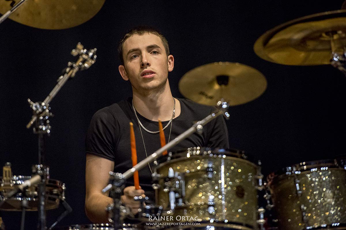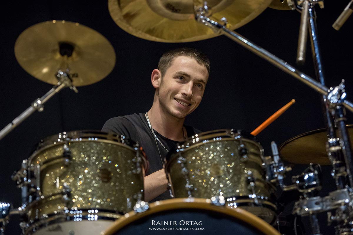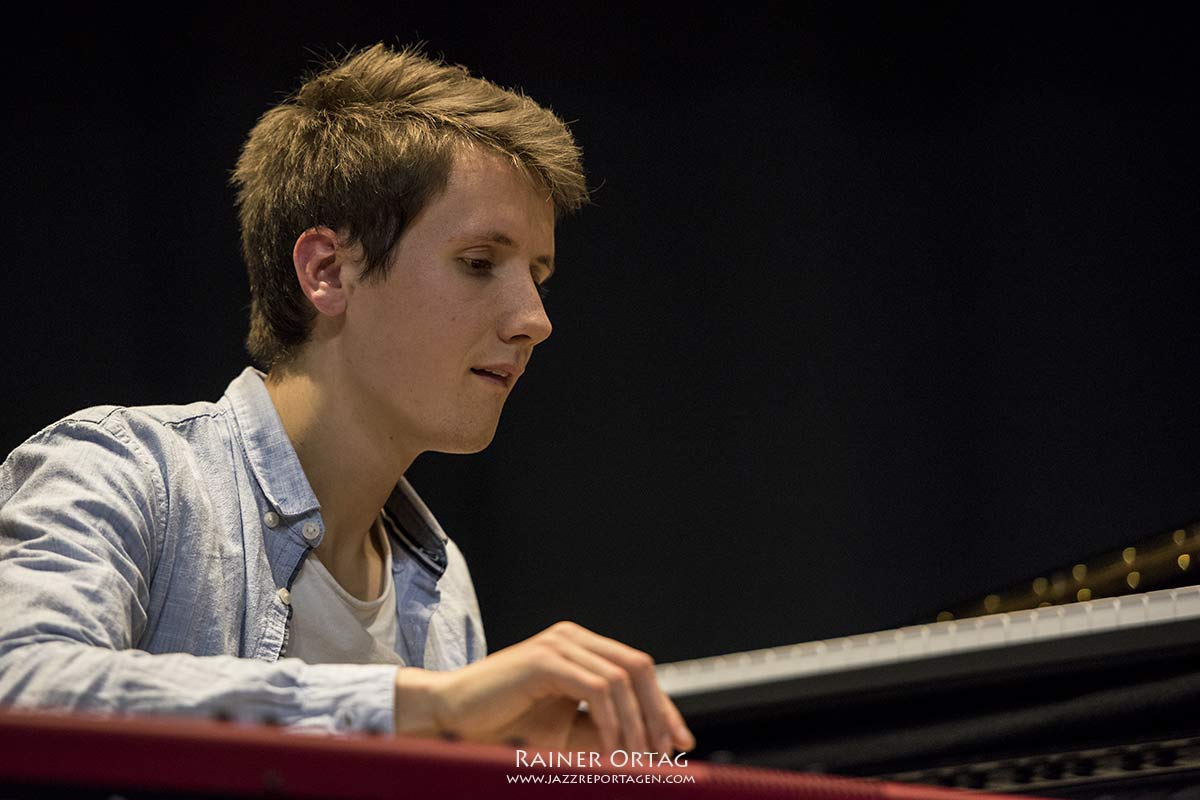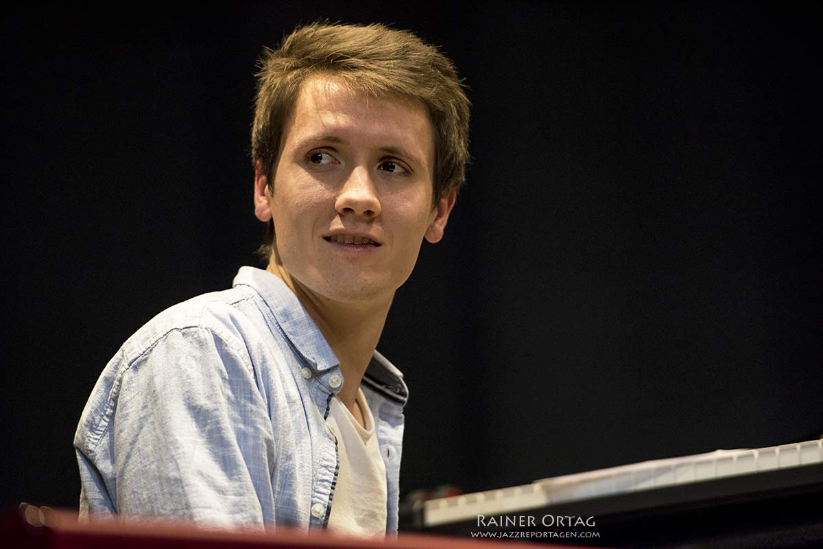 Jakob Manz, geboren 2001, hat bereits 10 Jahre Schlagzeug-, 8 Jahre Blockflöten- und 6 Jahre Saxophon-Unterricht hinter sich. Seit 5 Jahren studiert er Saxophon! Es ist wirklich unglaublich! Natürlich hat er schon diverse Preise gewonnen und seit 3 Jahren tritt er immer wieder mit seinem The Jakob Manz Project auf. Er beherrscht versiert alle Nuancen des Jazzsaxophons. Von gefühlvollen Balladen bis zu funkigen Soli überzeugt er das begeisterte Publikum.