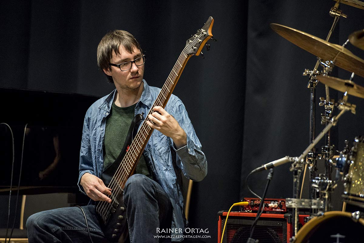 Seine Bandmitglieder sind nicht weniger professionell, die meisten der gespielten Stücke sind auch von diesem Quartett komponiert, wobei jeder seinen Beitrag geleistet hat. Frieder Klein spielt eine 6-seitige Bassgitarre, Hannes Stollsteimer alles was Tasten hat und Paul Albrecht Schlagzeug.