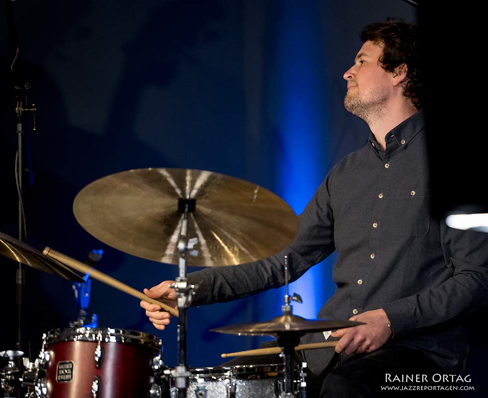 Seine friends waren an diesem Abend: Sebastian Sternal am Piano, Martin Gjakonovski am Bass und Silvio Morger am Schlagzeug. Alle vier Musiker waren schon in verschiedenen Formationen hier im Jazzkeller, aber noch nie zusammen. Sie spielten sehr gekonnt und swingend die bekannte Titel: „You Say You Care“, „Ana Maria“, „You Do Something To Me“,“A Flower Is A Lovesome Thing“, „Footprints“ und „Yes or No“.