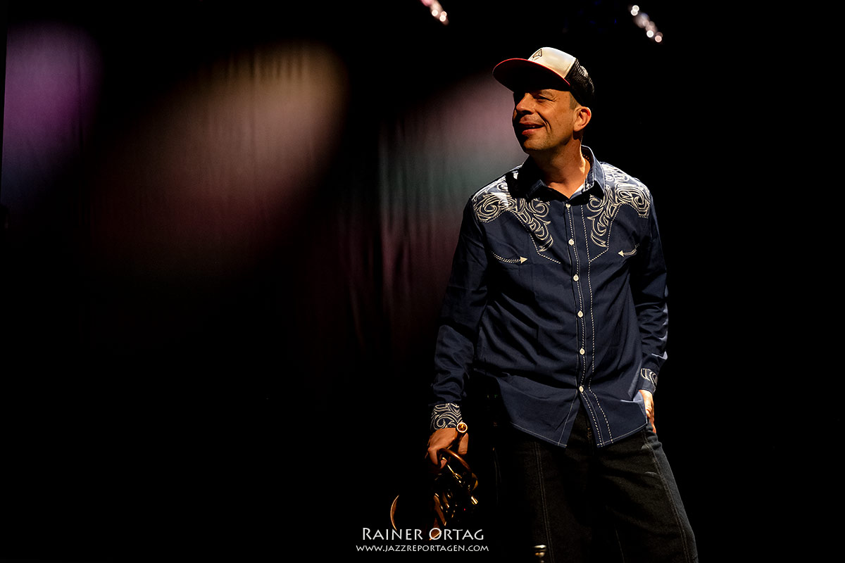 Pineira streichelt sanft seine Felle, lässt seine Becken zart erklingen, während Kraus eher in die Trompete atmet als bläst. Der strukturelle Aufbau bietet schon eine gewisse Genialität, Drumsounds Polyrhythmen und Hip Hop Beats vereinen sich zu groovigen Vibes. Der Flow, der zwischen den drei Musikern entsteht, ist von Anfang an zu spüren. Kraus hat eine enorme musikalische Bandbreite, die er diesen Abend auch ausleben kann. Vor knapp zwanzig Jahren gründete er zusammen mit Kraan-Bassist Helmut Hattler das Duo Tab Two und veröffentlichte drei kommerziell recht erfolgreiche Alben. Jahre später kamen mit dem Album Sueno, dass er im kubanischen Havanna aufnahm, die ersten Berührungen mit südamerikanischer Musik zustande. Und so ist es nicht verwunderlich dass Kraus zwischen einem kubanischen Pianisten und einem uruguayischen Drummer musikalisch das perfekte „Missing Link“ ist. Doch manchmal überzieht Kraus seine elektronischen Experimente etwas und man wünscht sich etwas mehr „normales“ Trompetenspiel. Da wäre weniger manchmal etwas mehr gewesen.