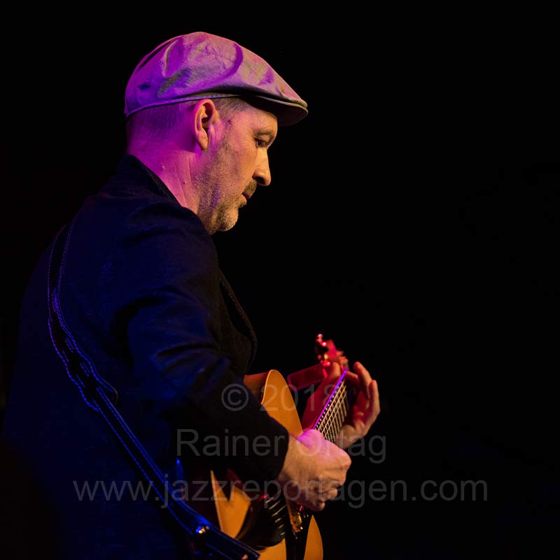 Ganz alleine steht er zum Auftakt auf der Bühne und spielt einen Kanon im 5/4tel-Takt. Seine Technik, die er sich autodidaktisch beibrachte und später beim Gitarrenstudium in Graz und in den USA verfeinerte, kommt aus der klassischen Musik und wird getragen von ruhigen, aber variantenreichen Interpretationen. Nach dem ersten Solostück betreten seine Mitmusiker Mathieu Michel (Trompete und Flügelhorn), Colin Vallon (Piano), Larry Grenadier (Kontrabass) und Schlagzeuger Jeff Ballard die Bühne und schon nach wenigen Takten ist klar: hier nehmen fünf Musiker ihr neues Album „Where The River Goes“ nur als Ausgangspunkt für ein spannendes Miteinander, das von intuitiver Magie, Überraschungsmomenten und vom gegenseitigen Zuhören der Musiker geprägt ist.